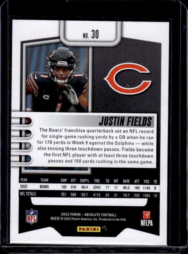 Justin Fields Green Parallel 2023 Panini Absolute #30