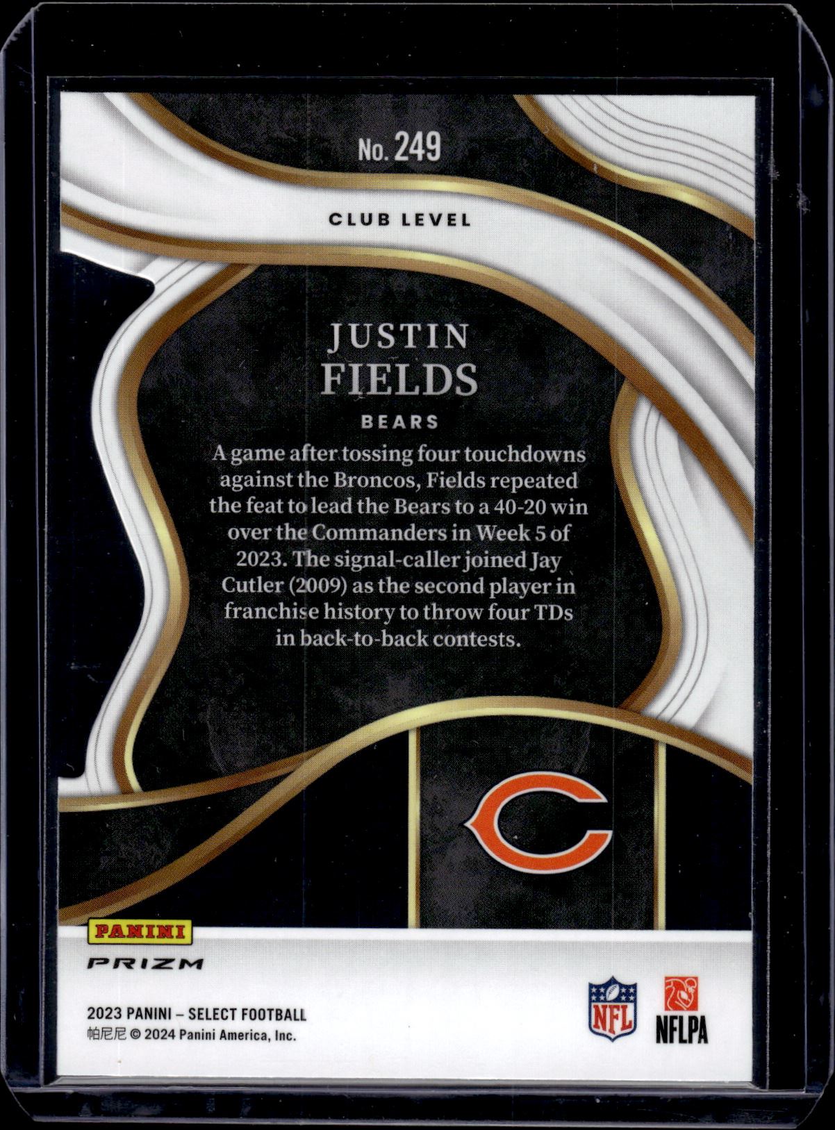 Justin Fields Red/Yellow Prizm Club Level Die Cut 2023 Select #249