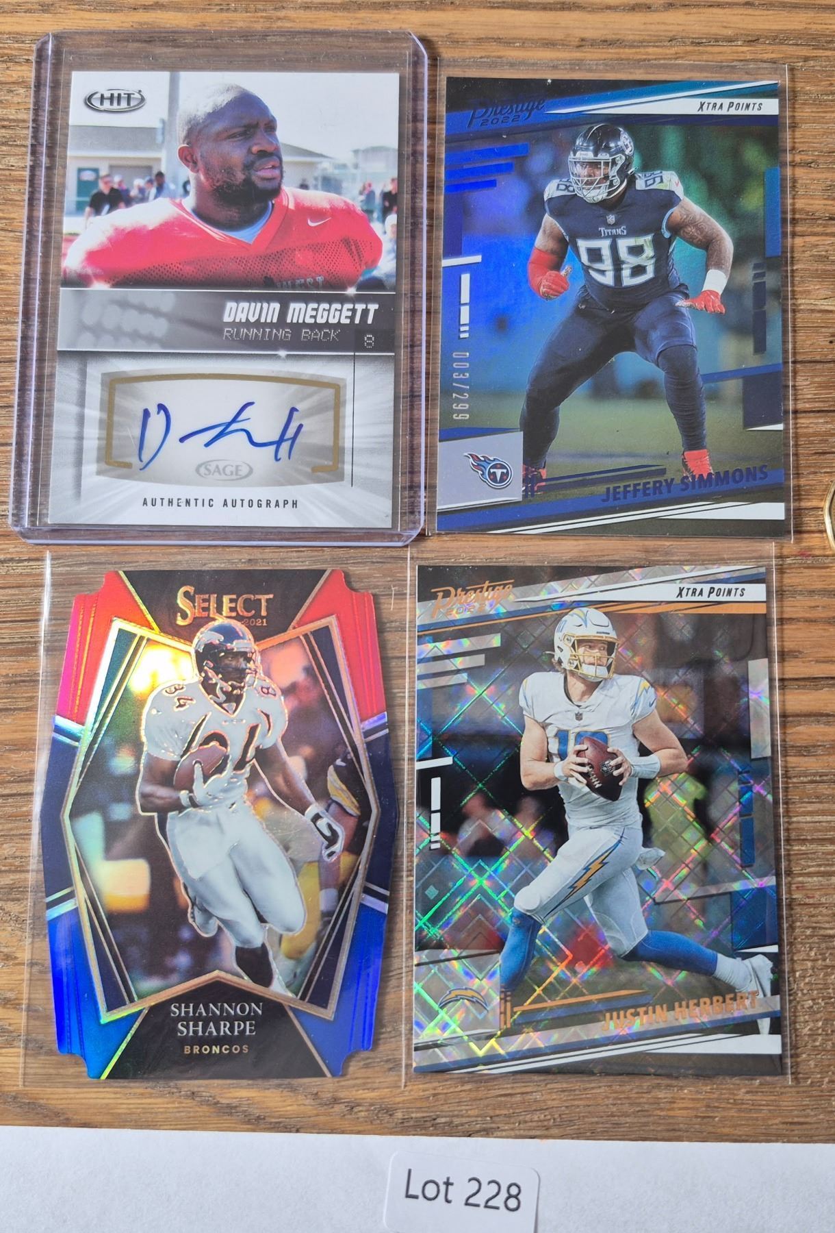 Includes Meggett Auto, Simmons Xtra Points 003/299, Sharpe Select, and Herbert Prestige. All cards in excellent to mint condition.