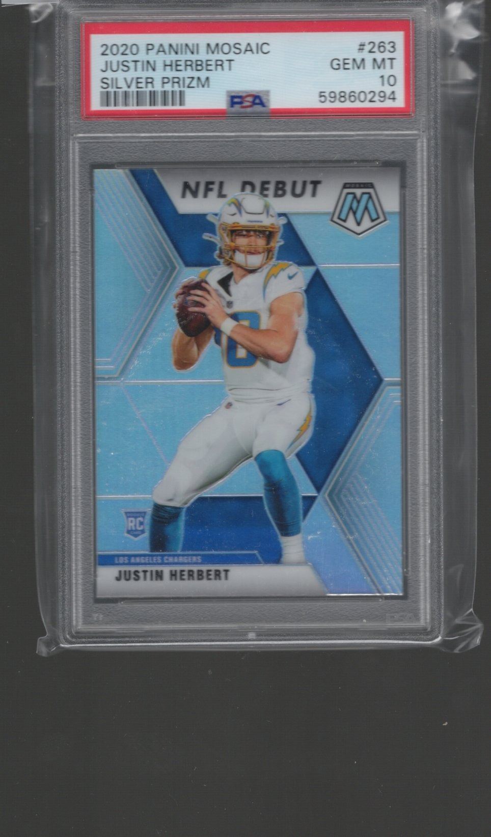 Justin Herbert Silver Prizm RC 2020 Mosaic NFL Debut #263 PSA 10