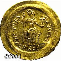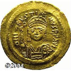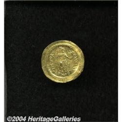 <B>Justin II.</B></I> A.D. 565-578. AV solidus (21 mm, 4.50 g). Constantinople. Helmeted and cuirassed bust facing, holding globe surmounted by Victory / Constantinopolis seated facing, head turned to right, holding sceptre and globus cruciger; (Theta)/CONOB. DOC 4h; SB 345. XF. <BR><I>From the Geneva Collection.</B></I> <BR><BR><B>Important notice:</B> Heritage usually auctions material at the rate of 200-250 lots per hour. On some occasions eBay Live bid software or the Internet may not be able to keep up with the pace of the auction. We recommend placing a realistic absentee bid now as insurance to avoid disappointment. Occasionally the auctioneer may eliminate or reject an eBay Live bid, and the auctioneer may also reopen a lot after the close of the eBay live bidding (usually because we missed an audience bid), and may reject your bid even if it shows you as the winning bidder. By bidding via eBay Live, you agree that Heritage may award the lot to another bidder at its sole discretion under the circumstances described above or any other reasonable circumstances. Since eBay bids are not shown to us until we open the lot on the floor, we treat those bids just like floor bids. In most cases the floor responds before the eBay bid is presented to us, due to Internet lag time, so for consistency we have made it a policy that floor bids are always considered first over tie eBay live bids. Also please note that all Heritage lots purchased through eBay Live carry a 20% Buyer's Premium. Please make sure you read the Terms and Conditions before you bid.
