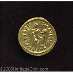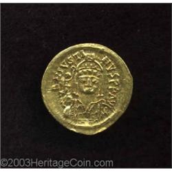<TABLE cellSpacing=0 cellPadding=0 width="100%" bgColor=#000000 border=0><TBODY> <TR><TD width="100%"><TABLE cellSpacing=1 cellPadding=3 width="100%" border=0><TBODY><TR><TD width="100%" bgColor=#79735c><FONT face=arial color=#ffffff size=3><B>Description</B> </FONT></TD></TR><TR><TD width="100%" bgColor=#ffffff><FONT face=arial size=2><B>Justin II.</B></I> A.D. 565-578. AV solidus (20 mm, 4.39 g). Constantinople. Diademed, helmeted and cuirassed bust facing, holding Victory on globe and shield decorated with a horseman spearing fallen enemy / Constantinopolis seated facing, head right, holding spear in right hand, globus cruciger in left; I/CONOB. DOC 4i; SB 345. XF, nearly as struck. </FONT></TD></TR></TBODY></TABLE></TD></TR></TBODY></TABLE><BR><A name=PricesRealized></A><TABLE cellSpacing=0 cellPadding=0 width="100%" bgColor=#000000 border=0><TBODY><TR><TD width="100%"><TABLE cellSpacing=1 cellPadding=3 width="100%" border=0><TBODY><TR><TD width="100%" bgColor=#79735c><A name=PR><FONT face=arial color=#ffffff size=3><B>Previous Prices from Heritage Auctions</B> </FONT></A></TD></TR><TR><TD bgColor=#f6f6ed>No Prior Data Recorded </TD></TR><TR><TD bgColor=#ffffff><FONT face=arial size=1 ?>PLEASE NOTE: All prices realized reflect the final hammer price PLUS the buyer's premium in auctions that charge a buyer's premium. Each item has a notation at the top of the listing indicating whether that lot included a buyer's premium. Example: A item that sells with a final hammer price of $100 and a 20% buyer's premium will display with a price realized of $120. All information listed is intended to be as accurate as possible, but errors are possible. Please use this guide carefully and inform us of any inaccuracies. </FONT></TD></TR></TBODY></TABLE></TD></TR></TBODY></TABLE><BR><TABLE cellSpacing=0 cellPadding=0 width="100%" bgColor=#000000 border=0><TBODY><TR><TD width="100%"><TABLE cellSpacing=1 cellPadding=3 width="100%" border=0><TBODY><TR><TD width="100%" bgColor=#79735c colSpan=6><FONT face=arial color=#ffffff size=3><B>Price Guide*</B> </FONT></TD></TR><TR bgColor=#f6f6ed><TD align=middle><B>Grade</B> </TD><TD align=middle><B>Coin World<BR>(Trends)</B> </TD><TD align=middle><B>Numismedia<BR>Retail</B> </TD><TD align=middle><B>Numismedia<BR>Wholesale</B> </TD><TD align=middle><B>Coin<BR>Universe</B> </TD><TD align=middle><B>Heritage<BR>Value Index</B> </TD></TR><TR bgColor=#ffffff><TD colSpan=6><FONT size=1>*All information listed is intended to be as accurate as possible, but errors are possible. No item may be returned or refused based on this information which is provided as a service to our customers. You should contact each pricing source directly to determine the accuracy of this information. </FONT></TD></TR></TBODY></TABLE></TD></TR></TBODY></TABLE><BR><TABLE cellSpacing=0 cellPadding=0 width="100%" bgColor=#000000 border=0><TBODY><TR><TD width="100%"><TABLE cellSpacing=1 cellPadding=3 width="100%" border=0><TBODY><TR><TD width="100%" bgColor=#79735c><FONT face=arial color=#ffffff size=3><B>Population Guide</B> </FONT></TD></TR><TR bgColor=#ffffff> Important notice: Heritage usually auctions material at the rate of 200-250 lots per hour. On some occasions eBay Live bid software or the Internet may not be able to keep up with the pace of the auction. We recommend placing a realistic absentee bid now as insurance to avoid disappointment. Occasionally the auctioneer may eliminate or reject an eBay Live bid, and the auctioneer may also reopen a lot after the close of the eBay live bidding (usually because we missed an audience bid), and may reject your bid even if it shows you as the winning bidder. By bidding via eBay Live, you agree that Heritage may award the lot to another bidder at its sole discretion under the circumstances described above or any other reasonable circumstances. Also please note that all Heritage lots purchased through eBay Live carry a 20% Buyer's Premium. Please make sure you read the Terms and Conditions before you bid.</TD></TR></TBODY></TABLE></TD></TR></TBODY></TABLE>