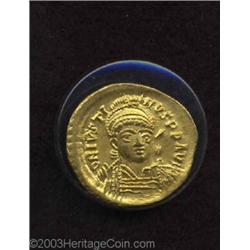 <TABLE cellSpacing=0 cellPadding=0 width="100%" bgColor=#000000 border=0><TBODY> <TR><TD width="100%"><TABLE cellSpacing=1 cellPadding=3 width="100%" border=0><TBODY><TR><TD width="100%" bgColor=#79735c><FONT face=arial color=#ffffff size=3><B>Description</B> </FONT></TD></TR><TR><TD width="100%" bgColor=#ffffff><FONT face=arial size=2><B>Justin I.</B></I> A.D. 518-527. AV solidus (22 mm, 4.46 g). Constantinople, A.D. 518-519. Diademed, helmeted and cuirassed three-quarter bust facing slightly right, holding spear over right shoulder and on left arm shield decorated with a horseman spearing fallen enemy / Victory standing left, holding long staff surmounted by a Christogram (inverted) in right hand; star in left field; E/CONOB. DOC 1d; SB 55. XF.<BR><I>The depiction of Victory on the reverse of this coin represents the last instance of her use as a type on Byzantine coinage. With the union with the Roman Church on 28 March 519, the standard reverse for the solidus became the male Angel.</B></I> </FONT></TD></TR></TBODY></TABLE></TD></TR></TBODY></TABLE><BR><A name=PricesRealized></A><TABLE cellSpacing=0 cellPadding=0 width="100%" bgColor=#000000 border=0><TBODY><TR><TD width="100%"><TABLE cellSpacing=1 cellPadding=3 width="100%" border=0><TBODY><TR><TD width="100%" bgColor=#79735c><A name=PR><FONT face=arial color=#ffffff size=3><B>Previous Prices from Heritage Auctions</B> </FONT></A></TD></TR><TR><TD bgColor=#f6f6ed>No Prior Data Recorded </TD></TR><TR><TD bgColor=#ffffff><FONT face=arial size=1 ?>PLEASE NOTE: All prices realized reflect the final hammer price PLUS the buyer's premium in auctions that charge a buyer's premium. Each item has a notation at the top of the listing indicating whether that lot included a buyer's premium. Example: A item that sells with a final hammer price of $100 and a 20% buyer's premium will display with a price realized of $120. All information listed is intended to be as accurate as possible, but errors are possible. Please use this guide carefully and inform us of any inaccuracies. </FONT></TD></TR></TBODY></TABLE></TD></TR></TBODY></TABLE><BR><TABLE cellSpacing=0 cellPadding=0 width="100%" bgColor=#000000 border=0><TBODY><TR><TD width="100%"><TABLE cellSpacing=1 cellPadding=3 width="100%" border=0><TBODY><TR><TD width="100%" bgColor=#79735c colSpan=6><FONT face=arial color=#ffffff size=3><B>Price Guide*</B> </FONT></TD></TR><TR bgColor=#f6f6ed><TD align=middle><B>Grade</B> </TD><TD align=middle><B>Coin World<BR>(Trends)</B> </TD><TD align=middle><B>Numismedia<BR>Retail</B> </TD><TD align=middle><B>Numismedia<BR>Wholesale</B> </TD><TD align=middle><B>Coin<BR>Universe</B> </TD><TD align=middle><B>Heritage<BR>Value Index</B> </TD></TR><TR bgColor=#ffffff><TD colSpan=6><FONT size=1>*All information listed is intended to be as accurate as possible, but errors are possible. No item may be returned or refused based on this information which is provided as a service to our customers. You should contact each pricing source directly to determine the accuracy of this information. </FONT></TD></TR></TBODY></TABLE></TD></TR></TBODY></TABLE><BR><TABLE cellSpacing=0 cellPadding=0 width="100%" bgColor=#000000 border=0><TBODY><TR><TD width="100%"><TABLE cellSpacing=1 cellPadding=3 width="100%" border=0><TBODY><TR><TD width="100%" bgColor=#79735c><FONT face=arial color=#ffffff size=3><B>Population Guide</B> </FONT></TD></TR><TR bgColor=#ffffff> Important notice: Heritage usually auctions material at the rate of 200-250 lots per hour. On some occasions eBay Live bid software or the Internet may not be able to keep up with the pace of the auction. We recommend placing a realistic absentee bid now as insurance to avoid disappointment. Occasionally the auctioneer may eliminate or reject an eBay Live bid, and the auctioneer may also reopen a lot after the close of the eBay live bidding (usually because we missed an audience bid), and may reject your bid even if it shows you as the winning bidder. By bidding via eBay Live, you agree that Heritage may award the lot to another bidder at its sole discretion under the circumstances described above or any other reasonable circumstances. Also please note that all Heritage lots purchased through eBay Live carry a 20% Buyer's Premium. Please make sure you read the Terms and Conditions before you bid.</TD></TR></TBODY></TABLE></TD></TR></TBODY></TABLE>