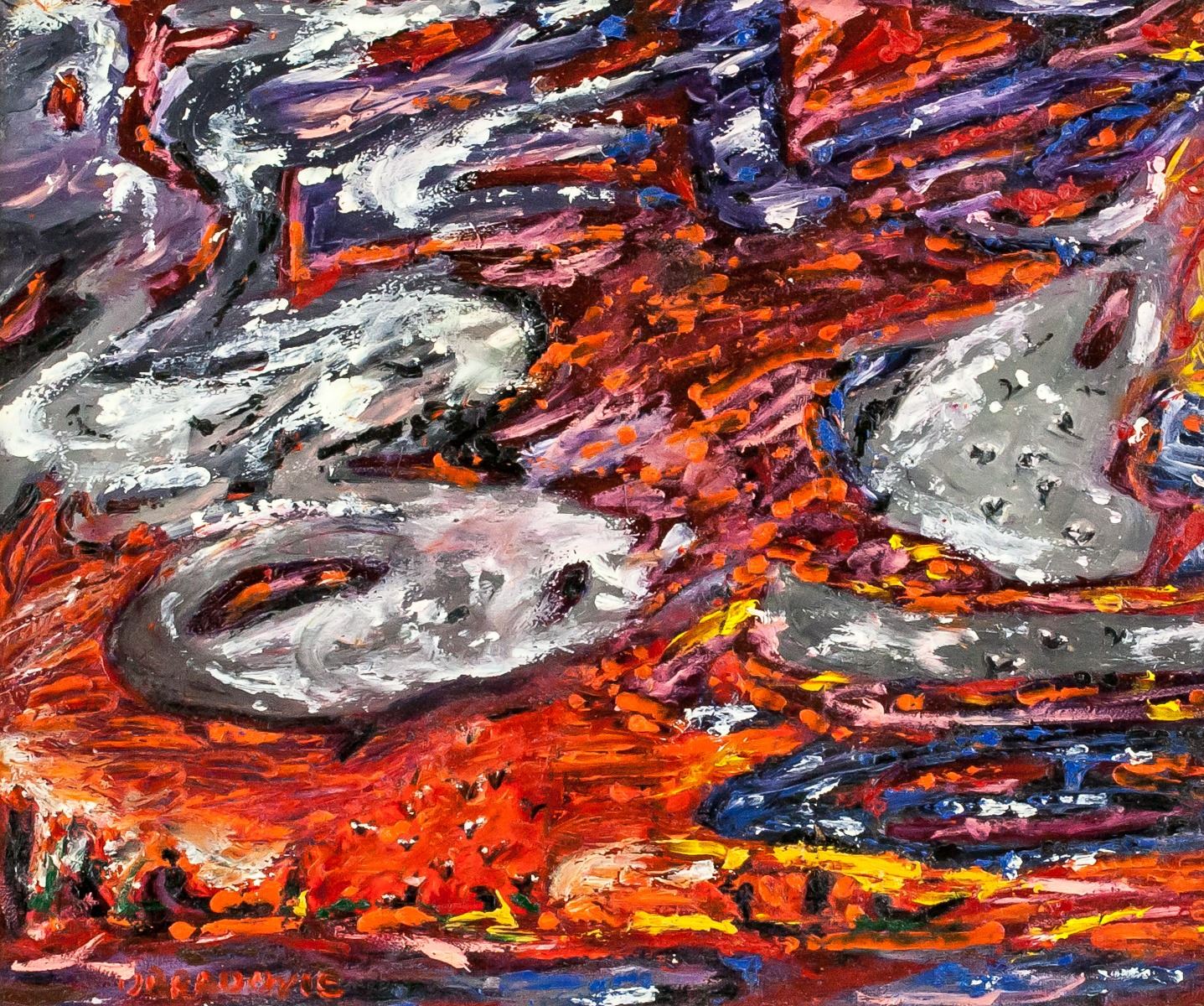 Oil on canvas, framed. Featuring abstract composition. Signed Obradovic in bottom left corner. Inscribed with "Justin Obradovic 2018 'Northern Sky, break in the storm"" on verso. Sticker affixed to verso reading "Justin Obradovic (1989-N/A) Canadian. Justin Obradovic grew up in Toronto where he resides as a living artist. Hist passion for art began at a young age. As a child he often surrounded himself in the outdoors and immersed himself in nature. Justin admired the beauty of his Ontario landscapes, which inspired his interest in painting. His works are in many galleries and seen around the world. His influences are often compared to those of the late Group of Seven." PROVENANCE: Received from artist. 38 x 44 cm (14.9 x 17.3 in), Frame: 51 x 58 cm (20 x 22.8 in)