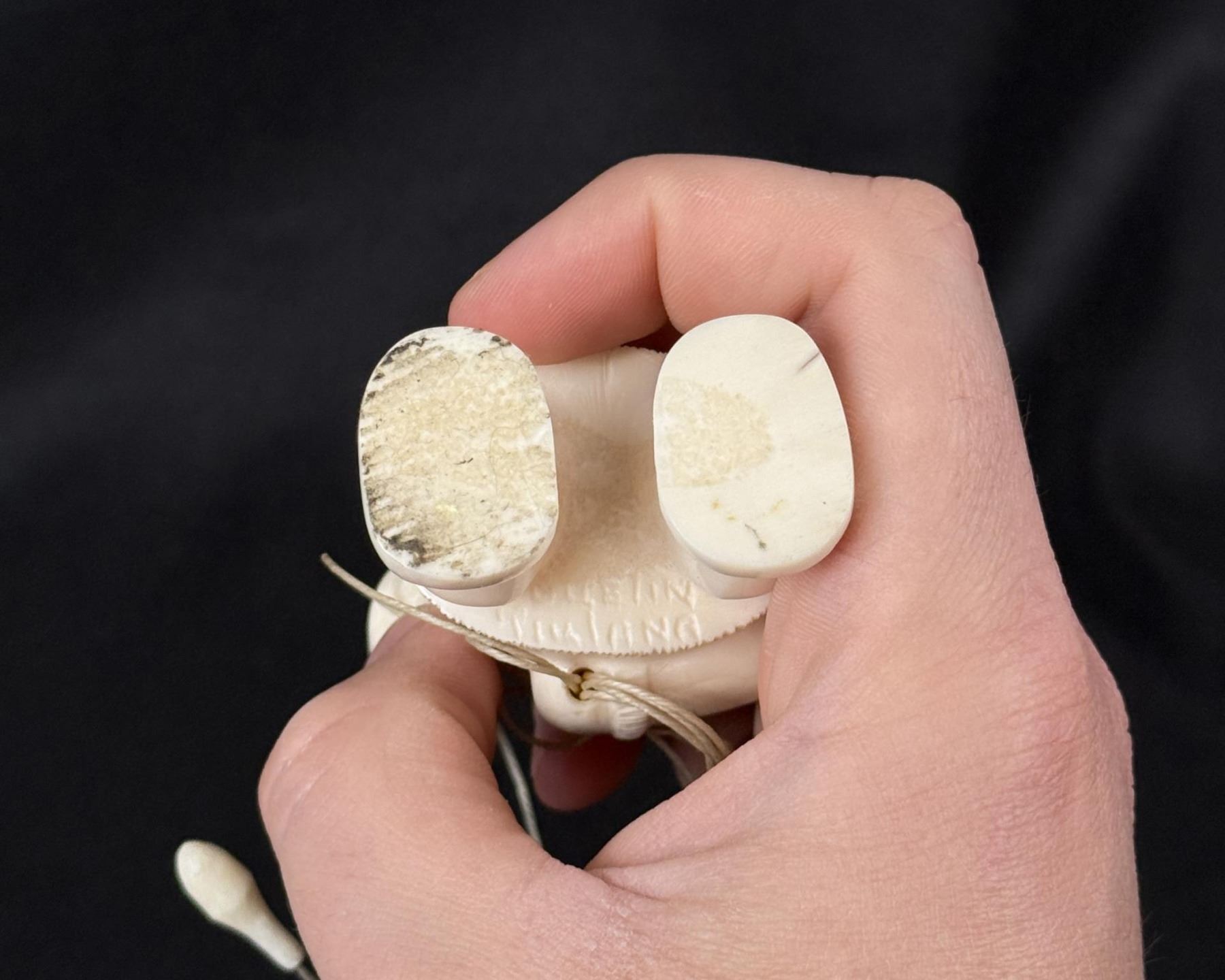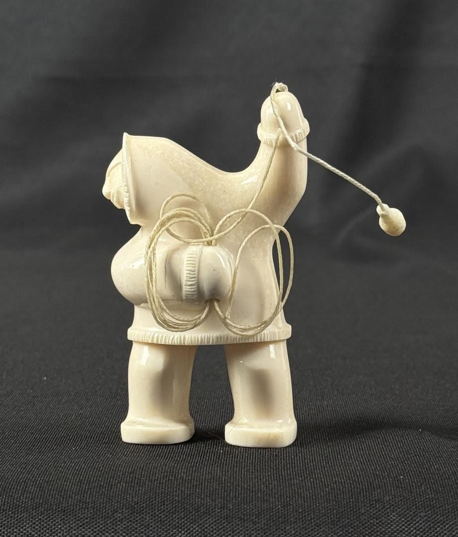 3 1/2" by 3" by 1 3/4" Carved Walrus Ivory. Native made prior to 1972. This item cannot be shipped to Oregon, California, Hawaii, New York, New Jersey, Internationally, or any other state that prohibits.