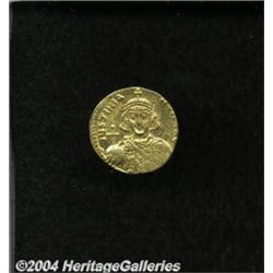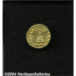 <B>Justinian II.</B></I> First Reign, A.D. 685-695. AV solidus (19 mm, 4.46 g). Constantinople, A.D. 685/6. Crowned facing bust, holding globus cruciger / Cross potent on three steps; E/CONOB. DOC 1 var. (officina not listed); SB 1245. XF, a little weak on edge. Rare issue.<BR><I>From the Geneva Collection.</B></I> <BR><BR><B>Important notice:</B> Heritage usually auctions material at the rate of 200-250 lots per hour. On some occasions eBay Live bid software or the Internet may not be able to keep up with the pace of the auction. We recommend placing a realistic absentee bid now as insurance to avoid disappointment. Occasionally the auctioneer may eliminate or reject an eBay Live bid, and the auctioneer may also reopen a lot after the close of the eBay live bidding (usually because we missed an audience bid), and may reject your bid even if it shows you as the winning bidder. By bidding via eBay Live, you agree that Heritage may award the lot to another bidder at its sole discretion under the circumstances described above or any other reasonable circumstances. Since eBay bids are not shown to us until we open the lot on the floor, we treat those bids just like floor bids. In most cases the floor responds before the eBay bid is presented to us, due to Internet lag time, so for consistency we have made it a policy that floor bids are always considered first over tie eBay live bids. Also please note that all Heritage lots purchased through eBay Live carry a 20% Buyer's Premium. Please make sure you read the Terms and Conditions before you bid.