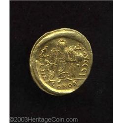 <TABLE cellSpacing=0 cellPadding=0 width="100%" bgColor=#000000 border=0><TBODY> <TR><TD width="100%"><TABLE cellSpacing=1 cellPadding=3 width="100%" border=0><TBODY><TR><TD width="100%" bgColor=#79735c><FONT face=arial color=#ffffff size=3><B>Description</B> </FONT></TD></TR><TR><TD width="100%" bgColor=#ffffff><FONT face=arial size=2><B>Justinian I.</B></I> A.D. 527-565. AV solidus (19 mm, 4.47 g). Constantinople, A.D. 538-545. Diademed, helmeted and cuirassed bust facing, holding globus cruciger and shield decorated with a horseman spearing fallen enemy / Angel standing facing, holding long cross in right hand, globus cruciger in left; star in right field; I/CONOB. DOC 8h; SB 139. VF, wavy flan. </FONT></TD></TR></TBODY></TABLE></TD></TR></TBODY></TABLE><BR><A name=PricesRealized></A><TABLE cellSpacing=0 cellPadding=0 width="100%" bgColor=#000000 border=0><TBODY><TR><TD width="100%"><TABLE cellSpacing=1 cellPadding=3 width="100%" border=0><TBODY><TR><TD width="100%" bgColor=#79735c><A name=PR><FONT face=arial color=#ffffff size=3><B>Previous Prices from Heritage Auctions</B> </FONT></A></TD></TR><TR><TD bgColor=#f6f6ed>No Prior Data Recorded </TD></TR><TR><TD bgColor=#ffffff><FONT face=arial size=1 ?>PLEASE NOTE: All prices realized reflect the final hammer price PLUS the buyer's premium in auctions that charge a buyer's premium. Each item has a notation at the top of the listing indicating whether that lot included a buyer's premium. Example: A item that sells with a final hammer price of $100 and a 20% buyer's premium will display with a price realized of $120. All information listed is intended to be as accurate as possible, but errors are possible. Please use this guide carefully and inform us of any inaccuracies. </FONT></TD></TR></TBODY></TABLE></TD></TR></TBODY></TABLE><BR><TABLE cellSpacing=0 cellPadding=0 width="100%" bgColor=#000000 border=0><TBODY><TR><TD width="100%"><TABLE cellSpacing=1 cellPadding=3 width="100%" border=0><TBODY><TR><TD width="100%" bgColor=#79735c colSpan=6><FONT face=arial color=#ffffff size=3><B>Price Guide*</B> </FONT></TD></TR><TR bgColor=#f6f6ed><TD align=middle><B>Grade</B> </TD><TD align=middle><B>Coin World<BR>(Trends)</B> </TD><TD align=middle><B>Numismedia<BR>Retail</B> </TD><TD align=middle><B>Numismedia<BR>Wholesale</B> </TD><TD align=middle><B>Coin<BR>Universe</B> </TD><TD align=middle><B>Heritage<BR>Value Index</B> </TD></TR><TR bgColor=#ffffff><TD colSpan=6><FONT size=1>*All information listed is intended to be as accurate as possible, but errors are possible. No item may be returned or refused based on this information which is provided as a service to our customers. You should contact each pricing source directly to determine the accuracy of this information. </FONT></TD></TR></TBODY></TABLE></TD></TR></TBODY></TABLE><BR><TABLE cellSpacing=0 cellPadding=0 width="100%" bgColor=#000000 border=0><TBODY><TR><TD width="100%"><TABLE cellSpacing=1 cellPadding=3 width="100%" border=0><TBODY><TR><TD width="100%" bgColor=#79735c><FONT face=arial color=#ffffff size=3><B>Population Guide</B> </FONT></TD></TR><TR bgColor=#ffffff> Important notice: Heritage usually auctions material at the rate of 200-250 lots per hour. On some occasions eBay Live bid software or the Internet may not be able to keep up with the pace of the auction. We recommend placing a realistic absentee bid now as insurance to avoid disappointment. Occasionally the auctioneer may eliminate or reject an eBay Live bid, and the auctioneer may also reopen a lot after the close of the eBay live bidding (usually because we missed an audience bid), and may reject your bid even if it shows you as the winning bidder. By bidding via eBay Live, you agree that Heritage may award the lot to another bidder at its sole discretion under the circumstances described above or any other reasonable circumstances. Also please note that all Heritage lots purchased through eBay Live carry a 20% Buyer's Premium. Please make sure you read the Terms and Conditions before you bid.</TD></TR></TBODY></TABLE></TD></TR></TBODY></TABLE>