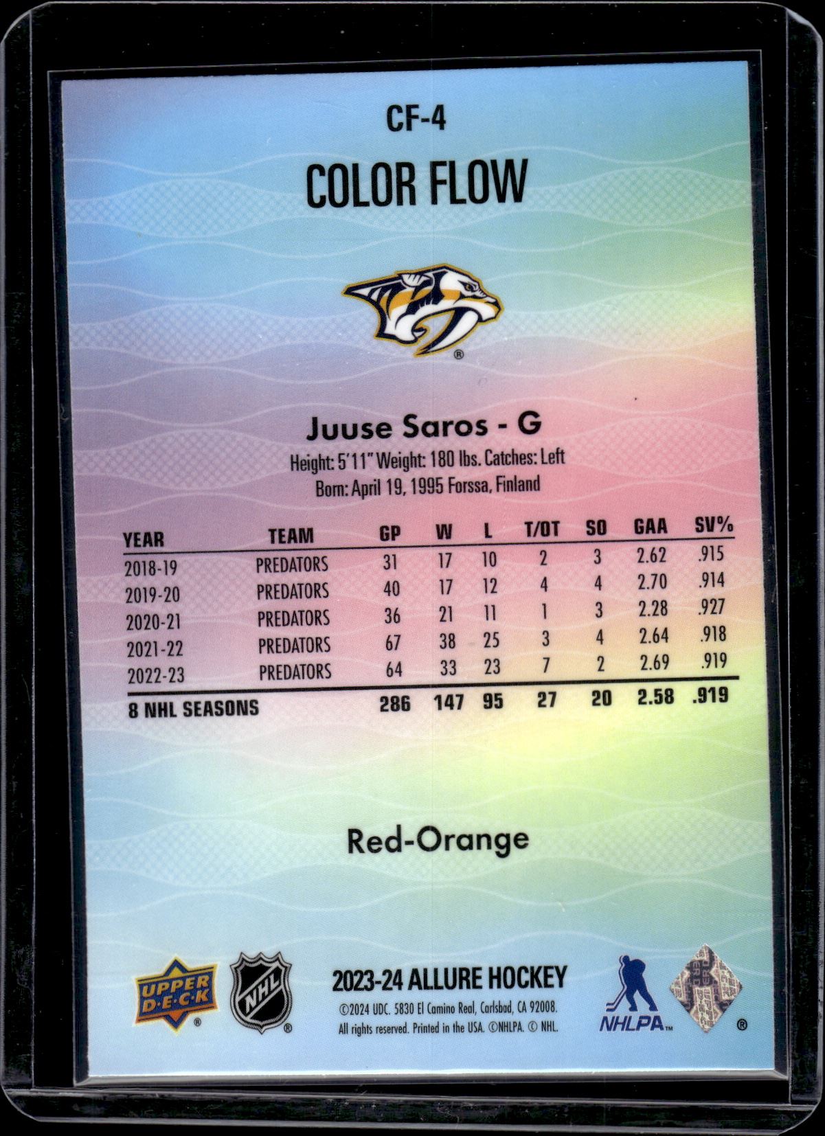 Juuse Saros Red/Orange Color Flow 2023-24 Allure #CF-4