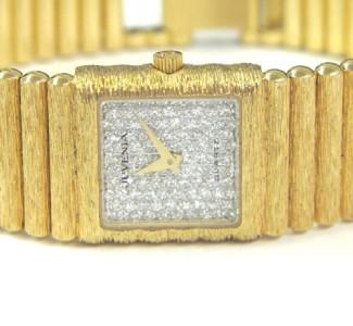 Juvenia 18K Yellow Gold, Diamond Watch with box.Watch's Weight : 63.5 grams.Total weight of diamonds: 1 cts, F color, VS-1 clarity.The length of watch: 6" , 15 mm wide.Swiss made.
