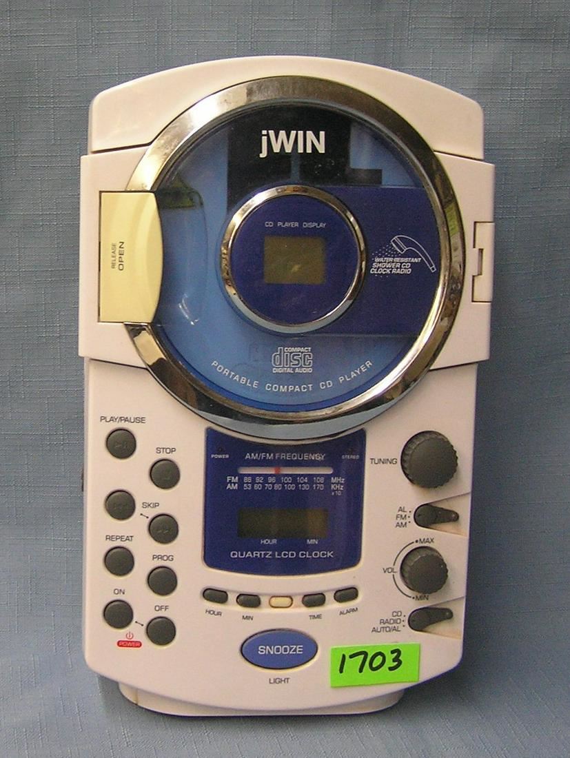 Jwin portable compact CD player and water resistant shower clock radio est. value $40.00-$50.00