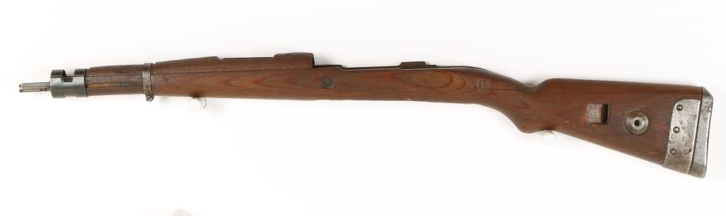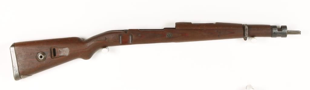 Stock. With all metal hardware and upper handguard. Upper handguard shows split near rear.