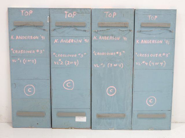 4 Panels. Oil on wood. Signed & dated on rear, 1991. Each panel approx. 45" x 60", 5' x 12' total.