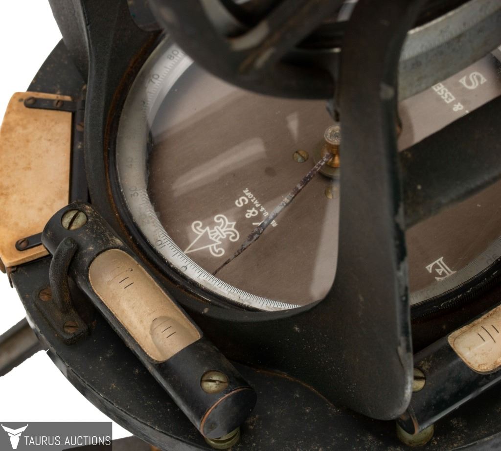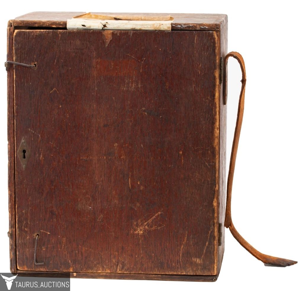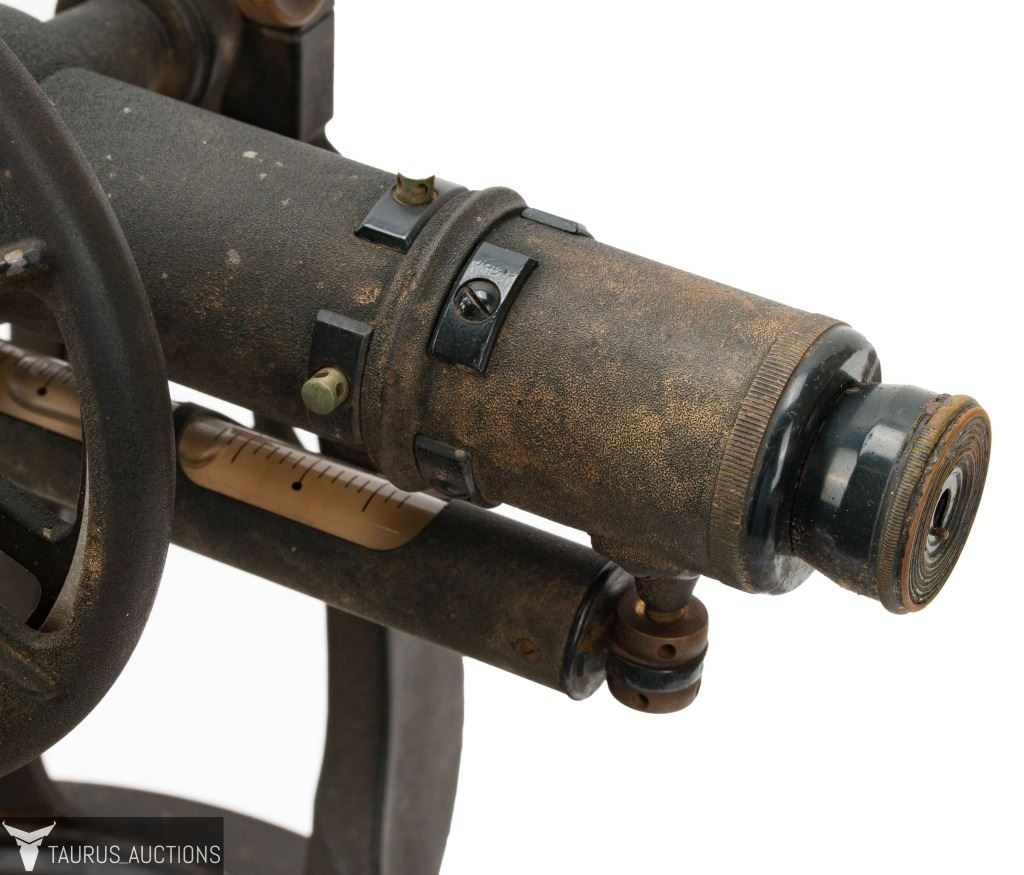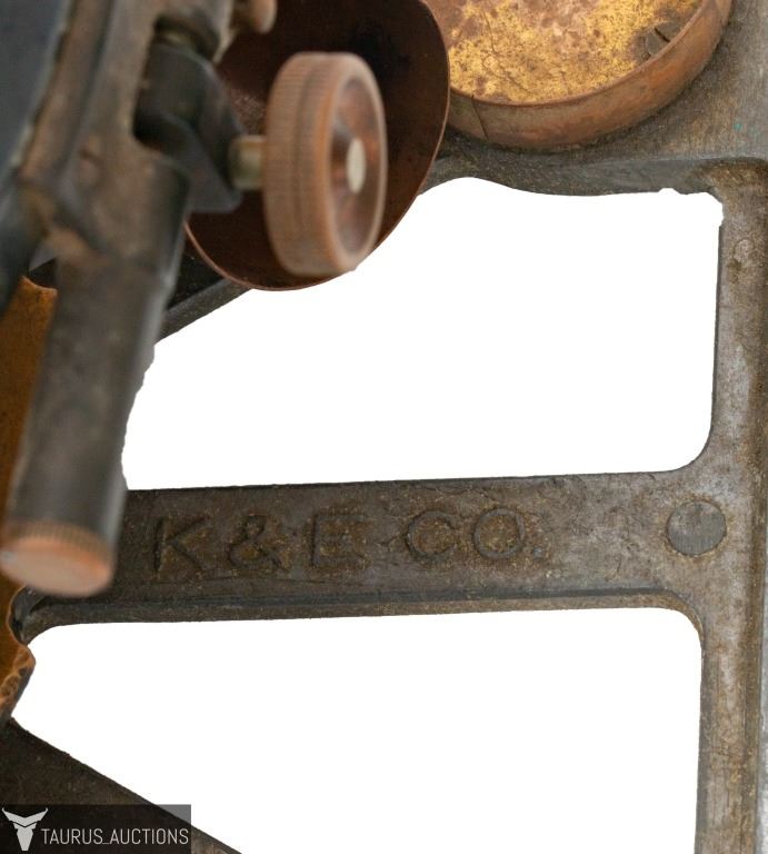 Item/Description: Vintage K&E Builders' Transit Level survey tool in original wooden case. Product label reads in part: Keuffel & Esser Co. No. Y513OF Serial 77585 3 1/2 x 8 Thread. Also includes User Manual for NP5153 Builders' Level & NP5155 Builders' Transit-Level. Leather pouch attached to the inside of the door is holding four tools. (Engineer)