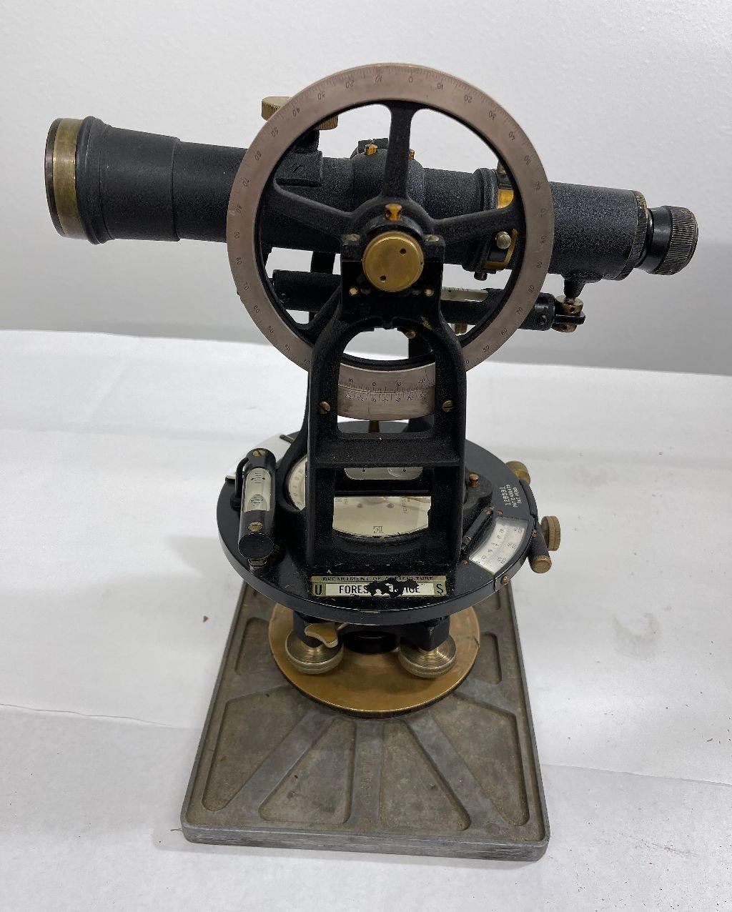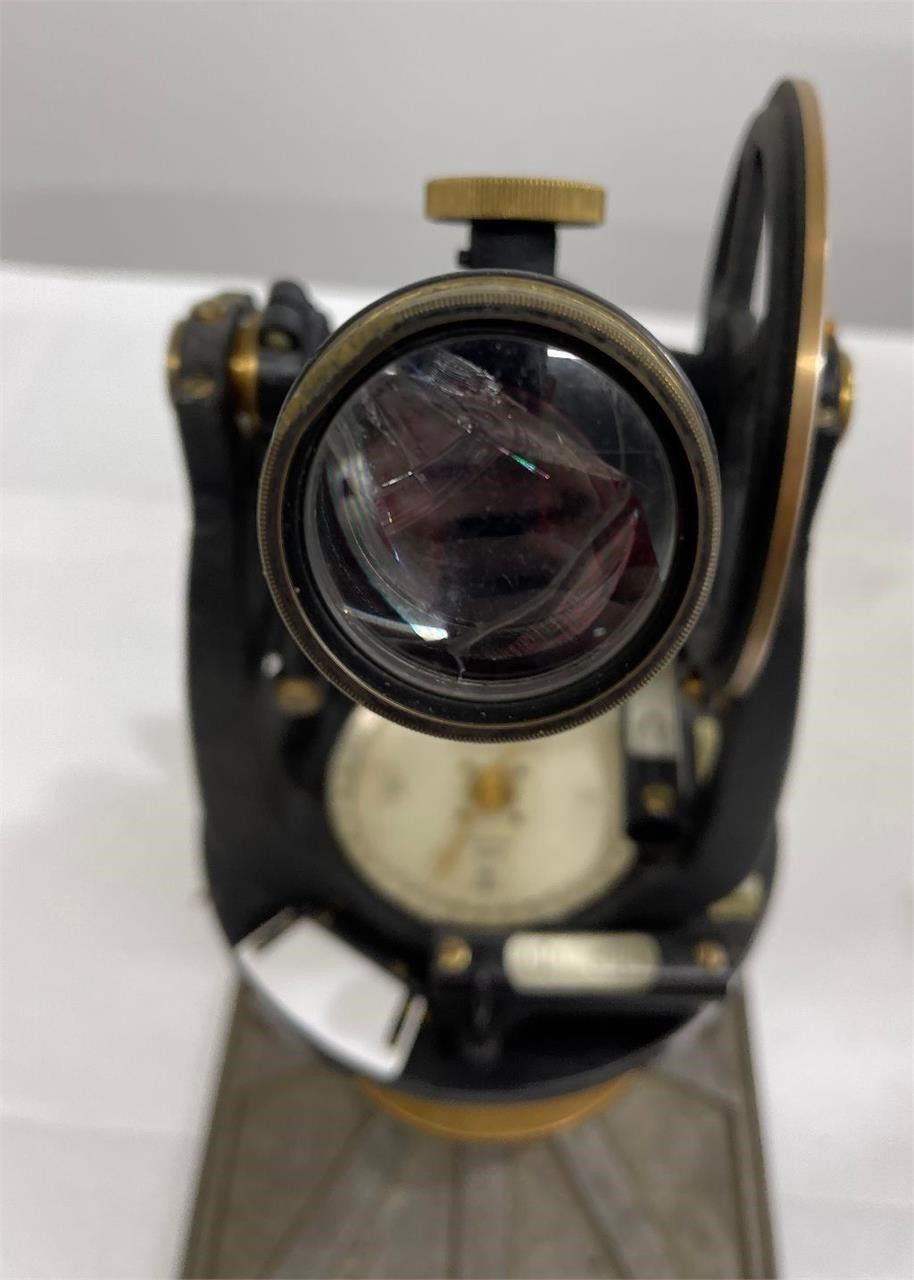 Very nice old transit. Front lens is damaged and needs replacement if transit is to be used. Comes with wood case as shown. Would look nice on display.