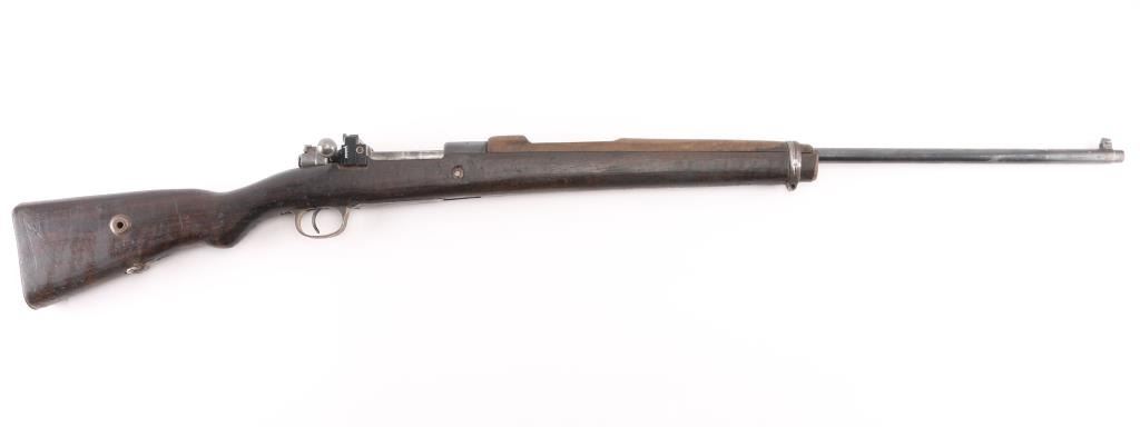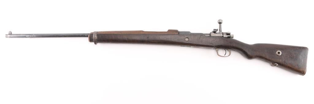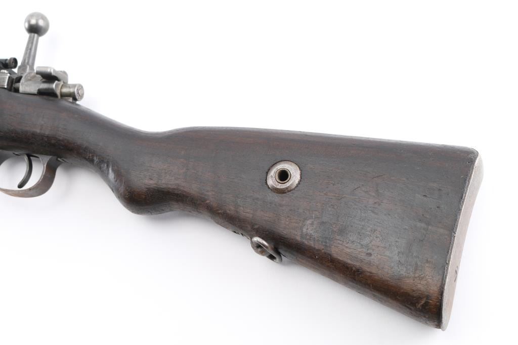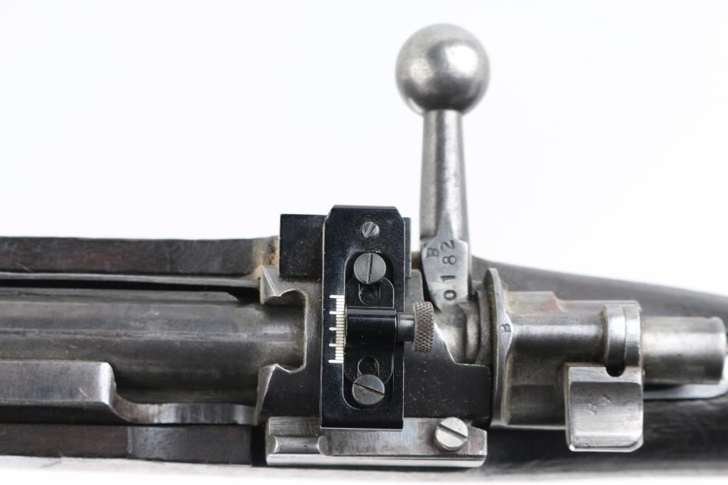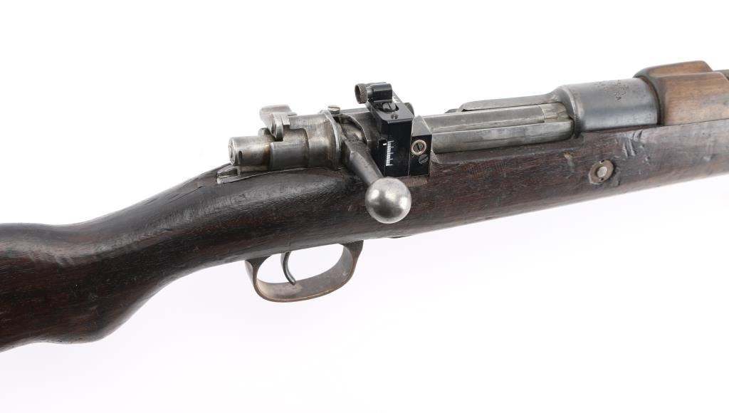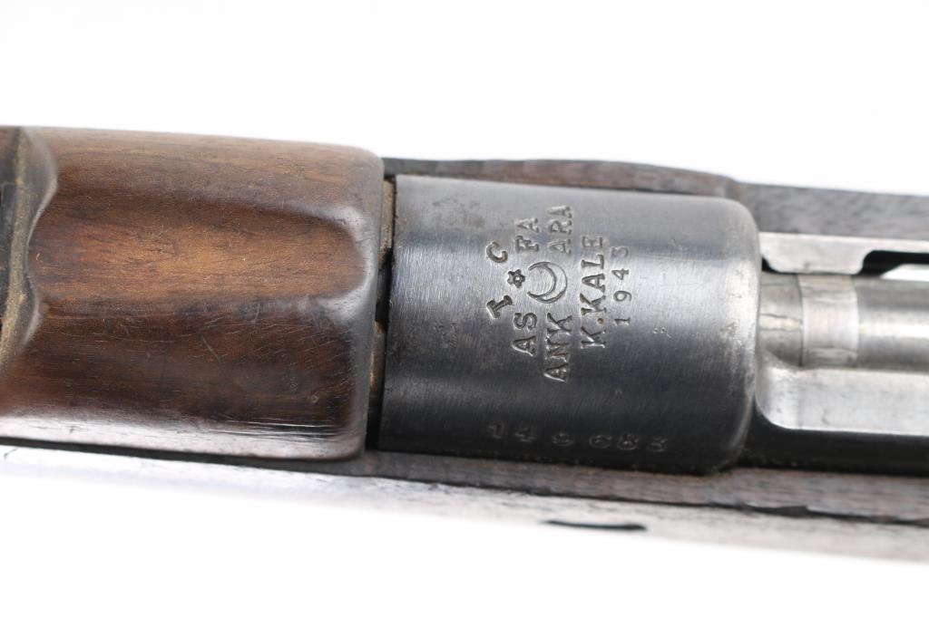 Sporterized Turkish military bolt action rifle imported by CAI, Georgia VT. Dated 1943. Features blued finish, walnut stock (has been cut), handguard, blade front sight, rear sight removed, manual safety. Receiver bridge drilled & tapped for the installed Williams rear peep sight. Front swivel removed from the rear band. Bore is fair to good, a bit dark, frosted, strong rifling. Retains 40% finish, much bare metal or fading finish, some light pitting. Wood is fair to good, slightly rough texture, with scratches and scuffs. Condition is NRA Good+ (sporterized) *** C&R Firearm ***