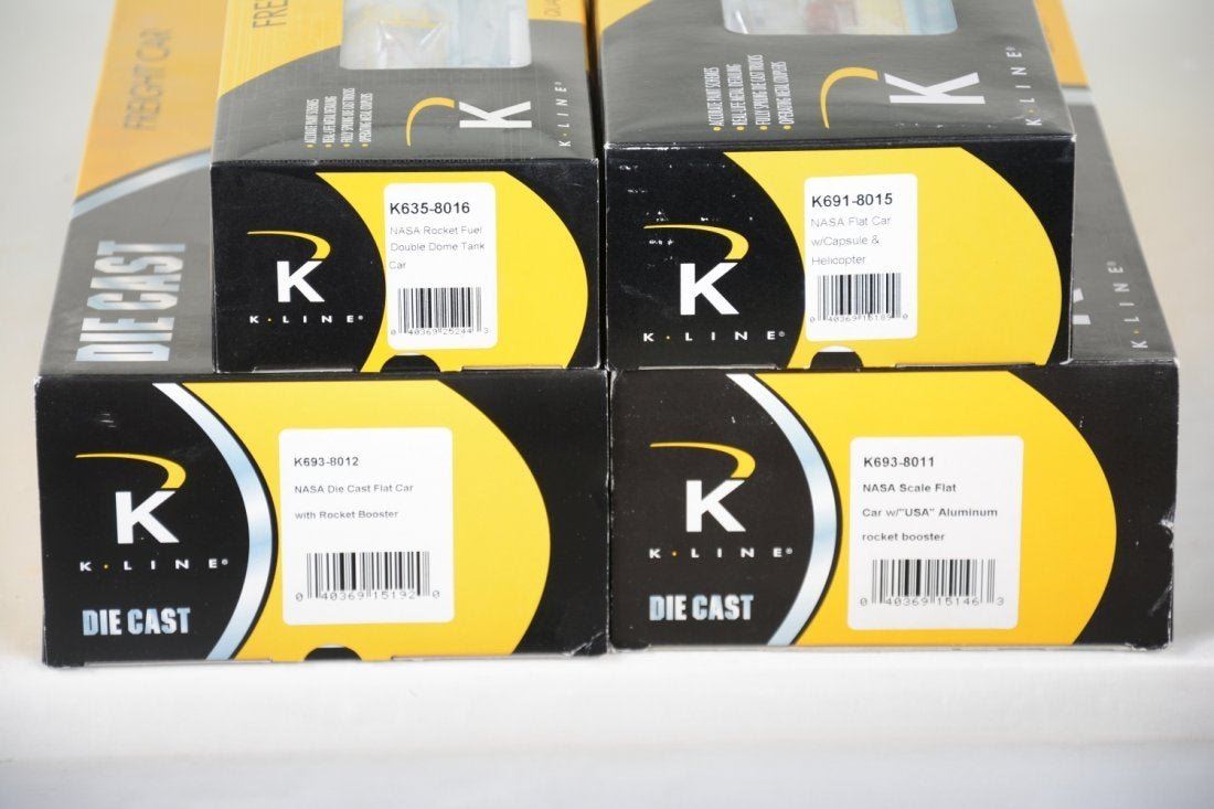 Includes K691-8015 flat with capsule & helicopter; 635-8016 rocket fuel tank; 693-8011 & 8012 flats with rocket boosters. They are new in boxes