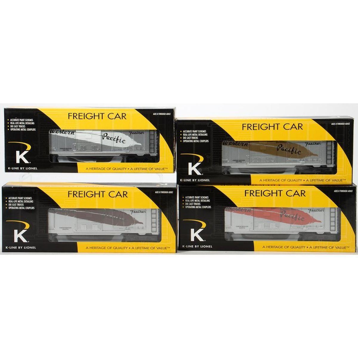 K-Line O Gauge. Box Cars. WP, WP, WP, WP, 4 Car Set