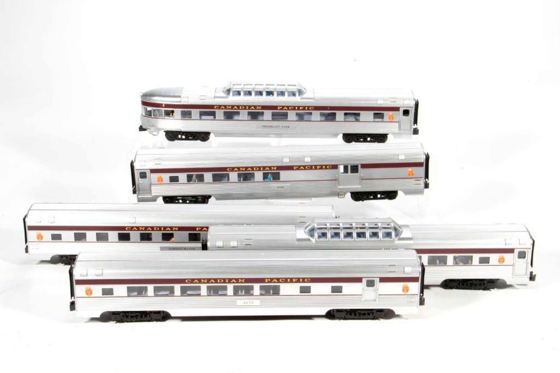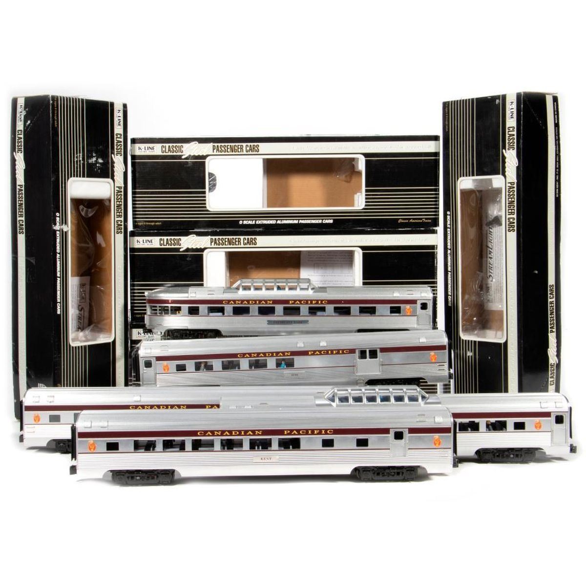 Canadian Pacific Aluminum Passenger Car Set: K4618-30003 Tremblant Park Observation; K4618-30517 Vista Dome Skyline #517; K461830001 Diner Kent; K4618-30002 Sleeper Dawson Manor; K4618-30006 Baggage/Dormitory #3006; K4618-30003 Observation all with original boxes