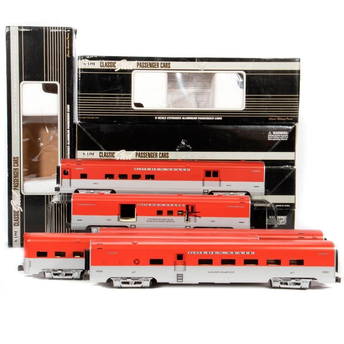 K-Line K4632-6015 Combine baggage/dormitory car; K4632-0479 Golden Divan Observation Car; K4632-3368 Imperial Terrace Pullman Car; K4632-4301 Railway Post Office/Baggage Car; K4632-0427 Golden Harvest Diner all with original boxes