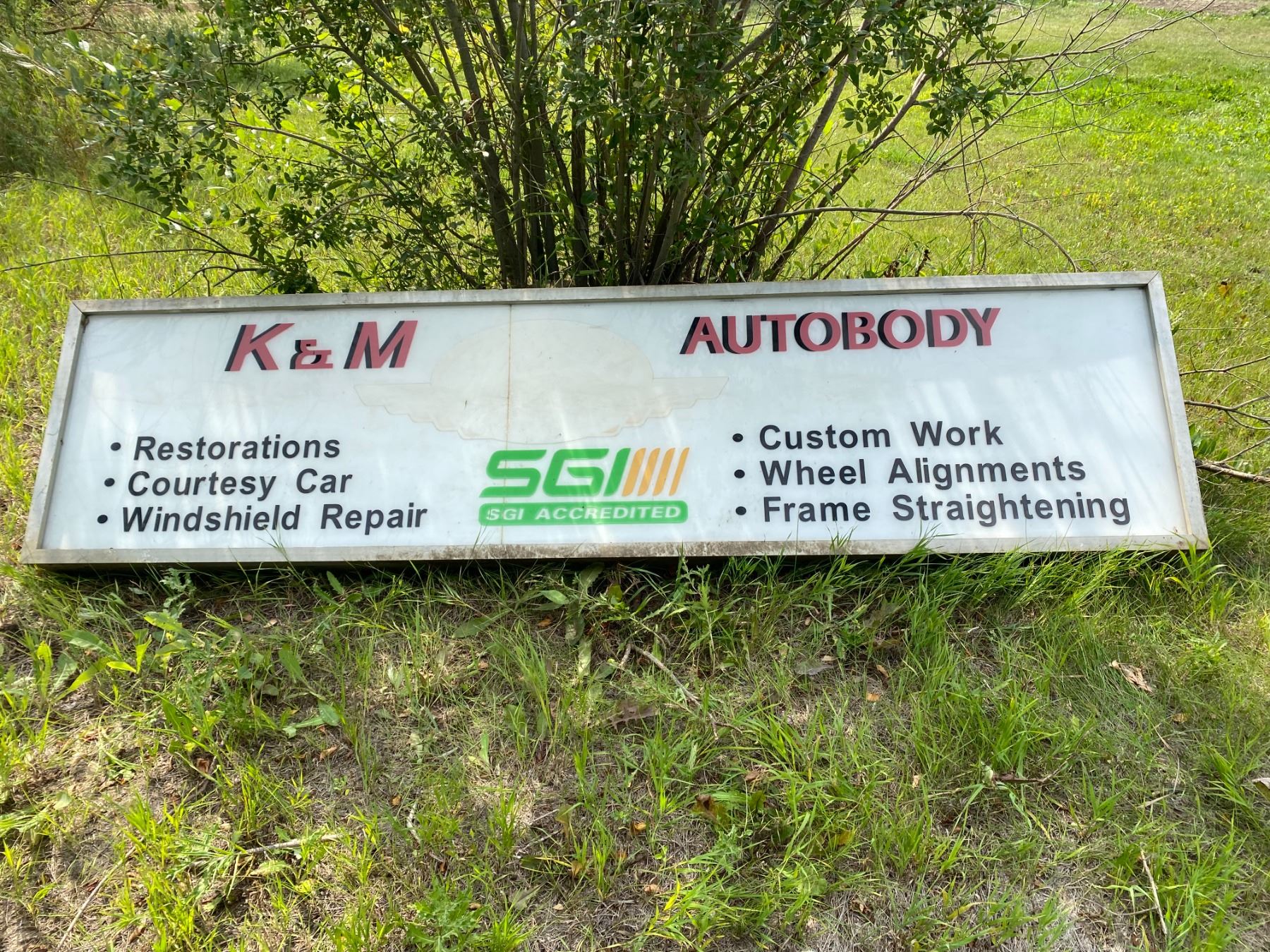 K & M Autobody Electric Sign in Working Condition (10' x 30") (Located Off-Site)