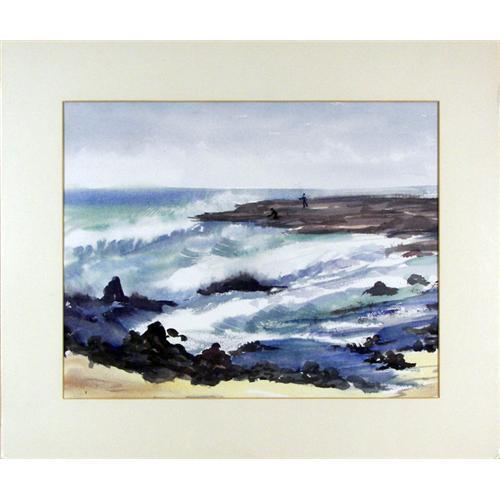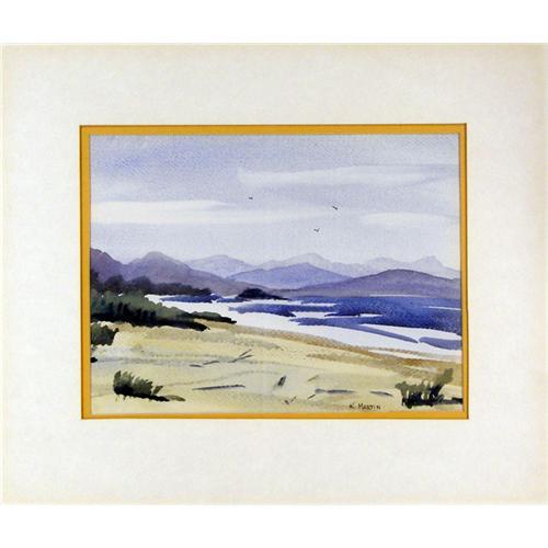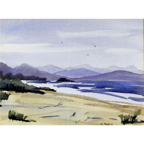 K. Martin, 3 Watercolors, Harbor Scene, sight size 9 3/8" x 13 3/8", signed lower right, "Hana Bay, Maui, Hawaii", sight size 14 1/8" x 17 7/8", signed lower right, "Lava Flows, Big Island", sight size 14 1/8" x 17 7/8", signed lower left