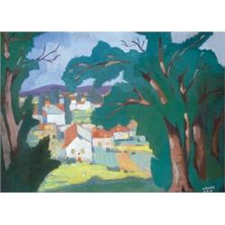 Kádár Béla (1877-1956) Táj házakkal<p>Tempera, papír, 57,5x78 cm Jelezve jobbra lent: Kádár Béla