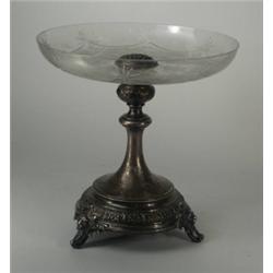 Ezüst, bruttó 425 g, domborított mintázatú masszával töltött kerek talpon, vésett oszlopos test, késobbi lapos csiszolt üvegtállal, Jelzett: osztrák, XIX sz. vége, Gedliczka & Söhne, M.: 21 cm