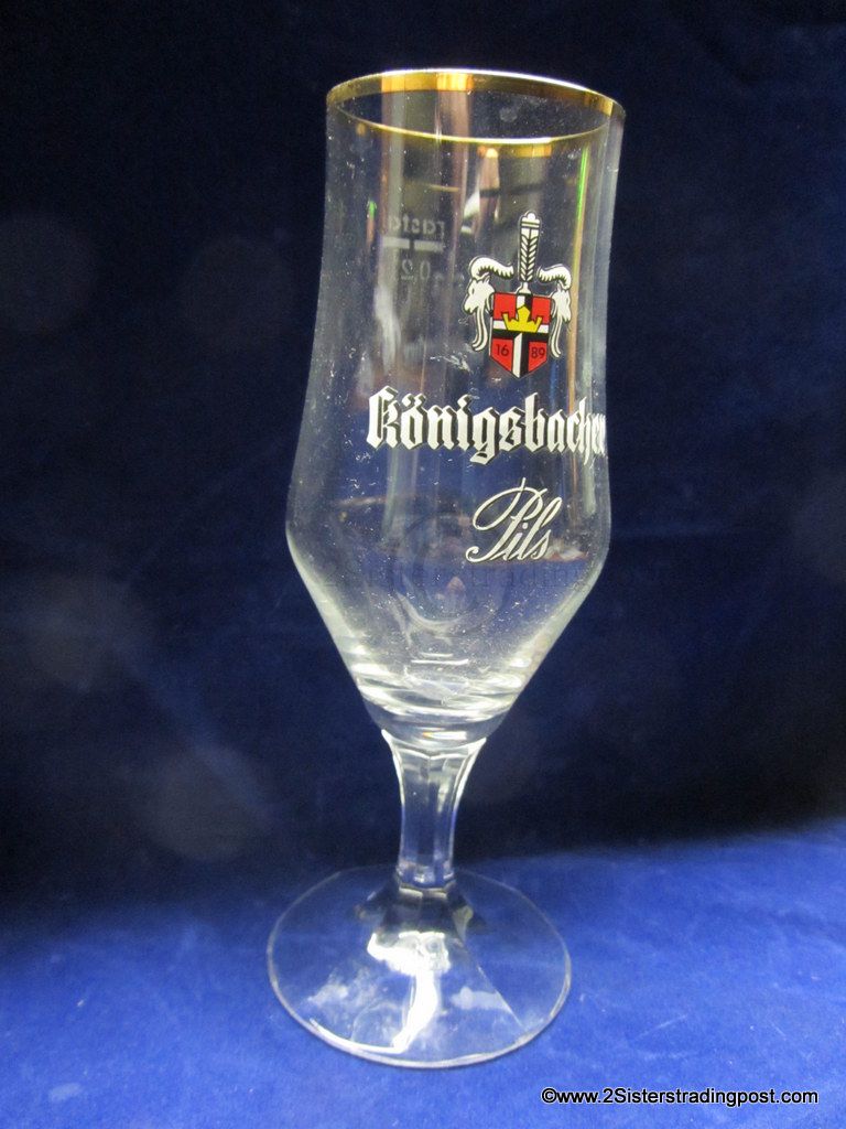 Königsbacher brewery has been located since 1689. The stem wear is rimmed in gold overall height is 7" tall x 2 1/8"