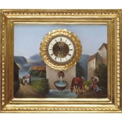 Osztrák, 19. sz. második fele, Forrás mellett, olaj, fémlemez, negyedütos ismétlo szerkezet, muködo zenélo szerkezettel