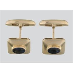 20. sz. utolsó harmada, 18 k arany, szögletes formában 2 db zafír, cca 2 ct, rugós patent záródással, 12,6 g