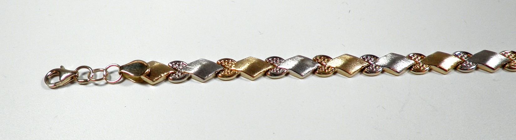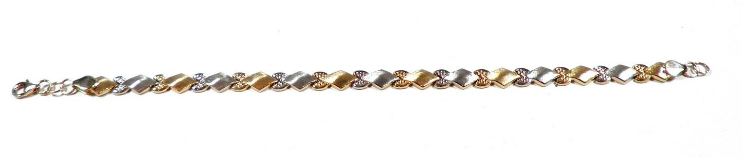 K14 gold link bracelet, yellow and white gold links, signed, weight: 6.1 gm, length: 19 cm.