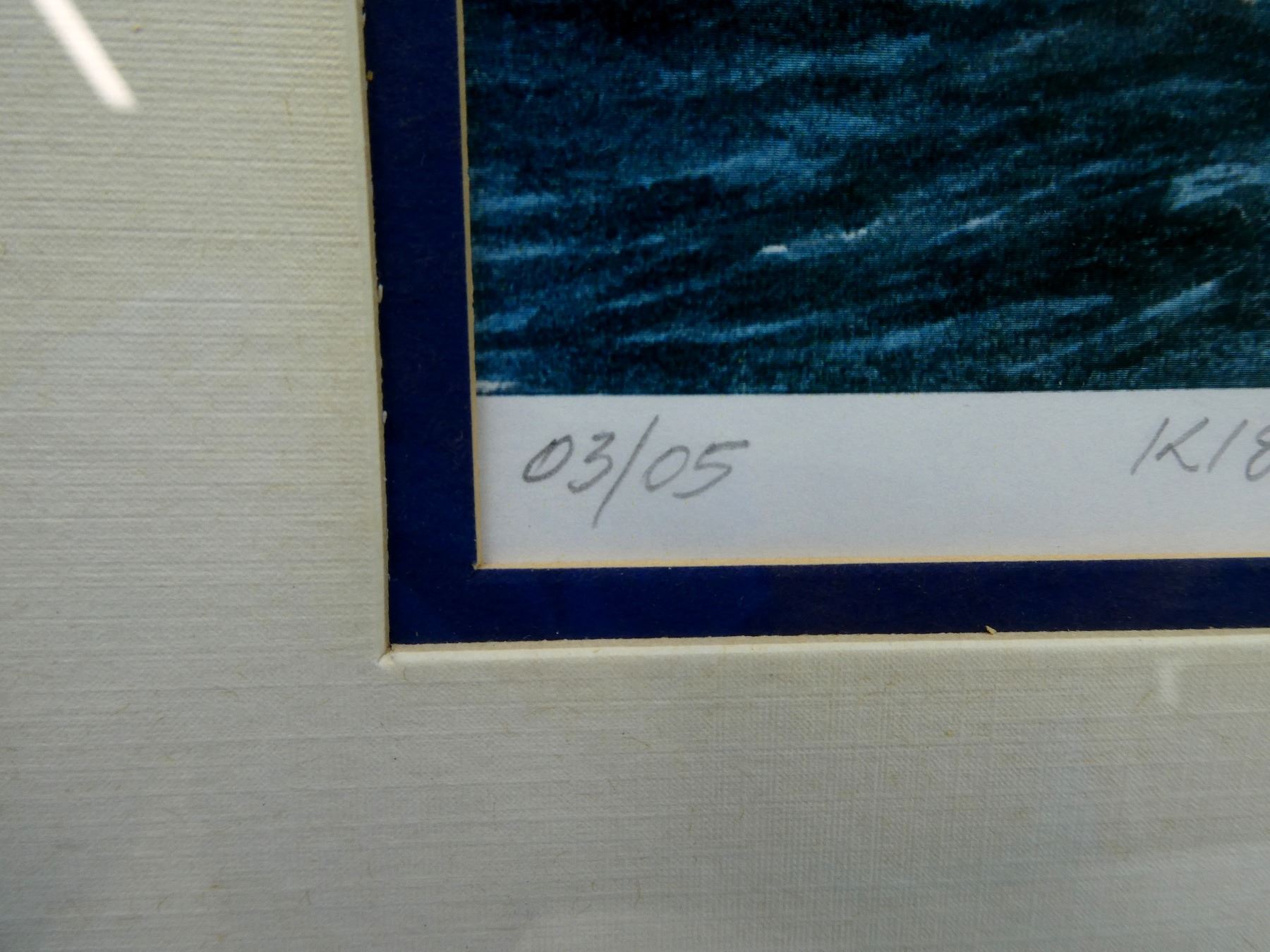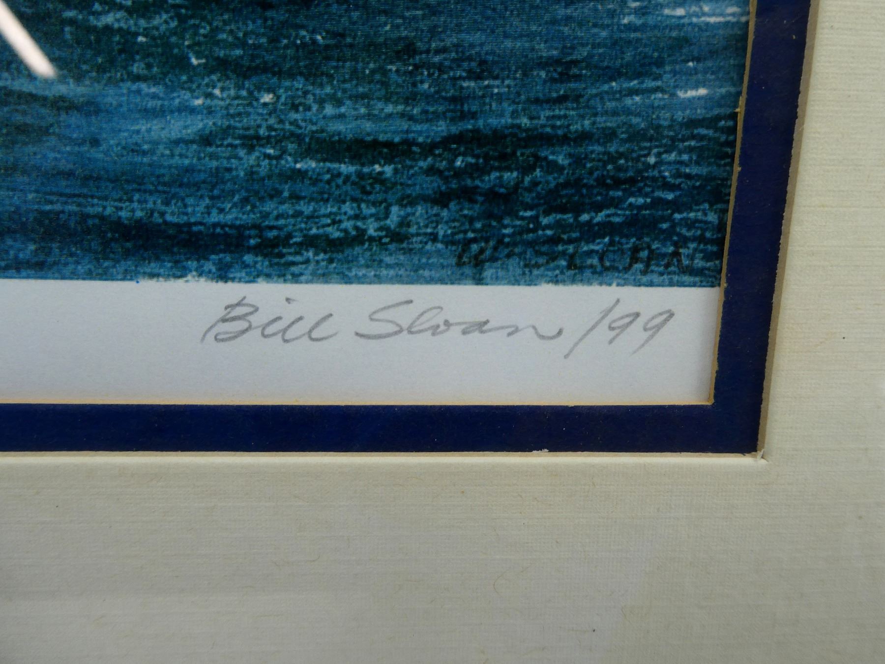 (1) BY BILL SLOAN, SIGNED BY ARTIST, PRINT NO. 03/05, FRAMED UNDER GLASS, FRAME APPROX. 23.75" X 19 5/8". SEE PHOTOS. *NO GUARANTEE ON GLASS FOR SHIPPING*