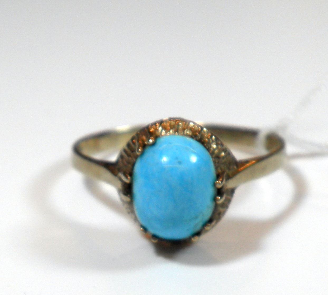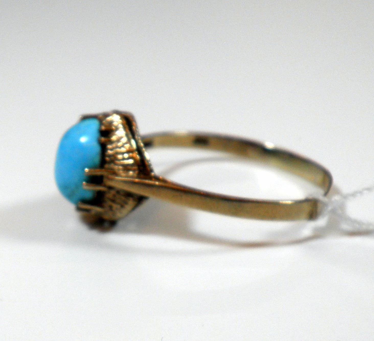 K8 gold ring with a turquoise setting, size 12, weight: 2.3 gm.