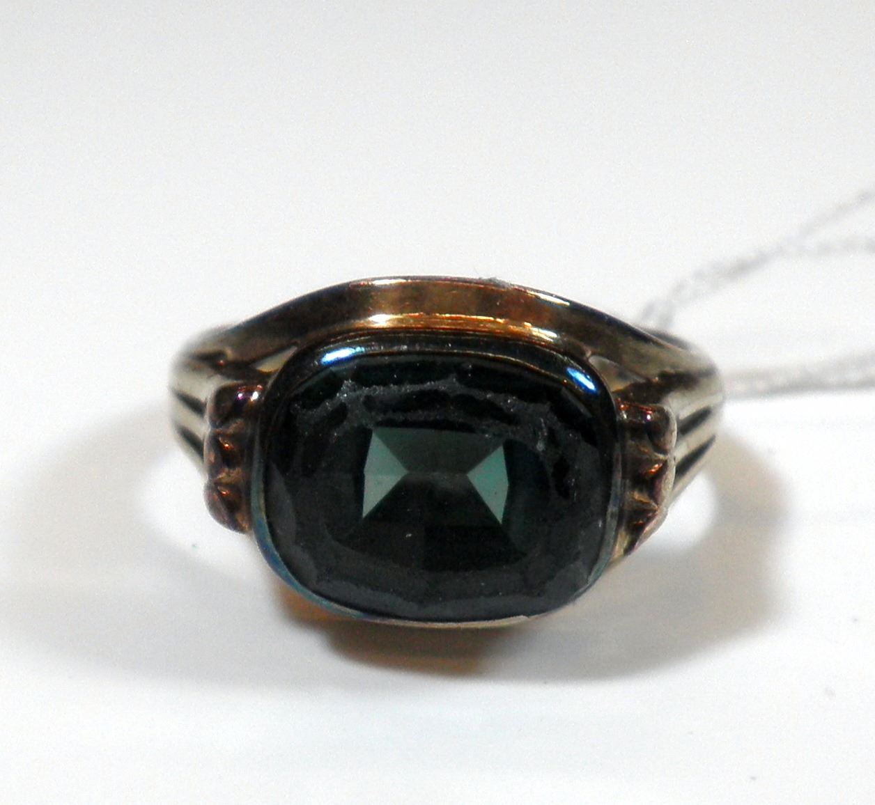 K8 gold ring with green tourmaline setting, size 7, weight: 3.9 gm.