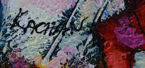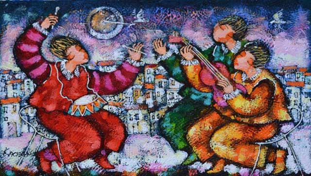 Artist: Michael Kachan (b. 1964) - Title: Music Outside the City - Medium: Original Mixed Media on Canvas - Signature: This one-of-a-kind work is hand-signed by the artist at the bottom of the image - Image Size: Approximately 20 inches x 30 inches - Unfr