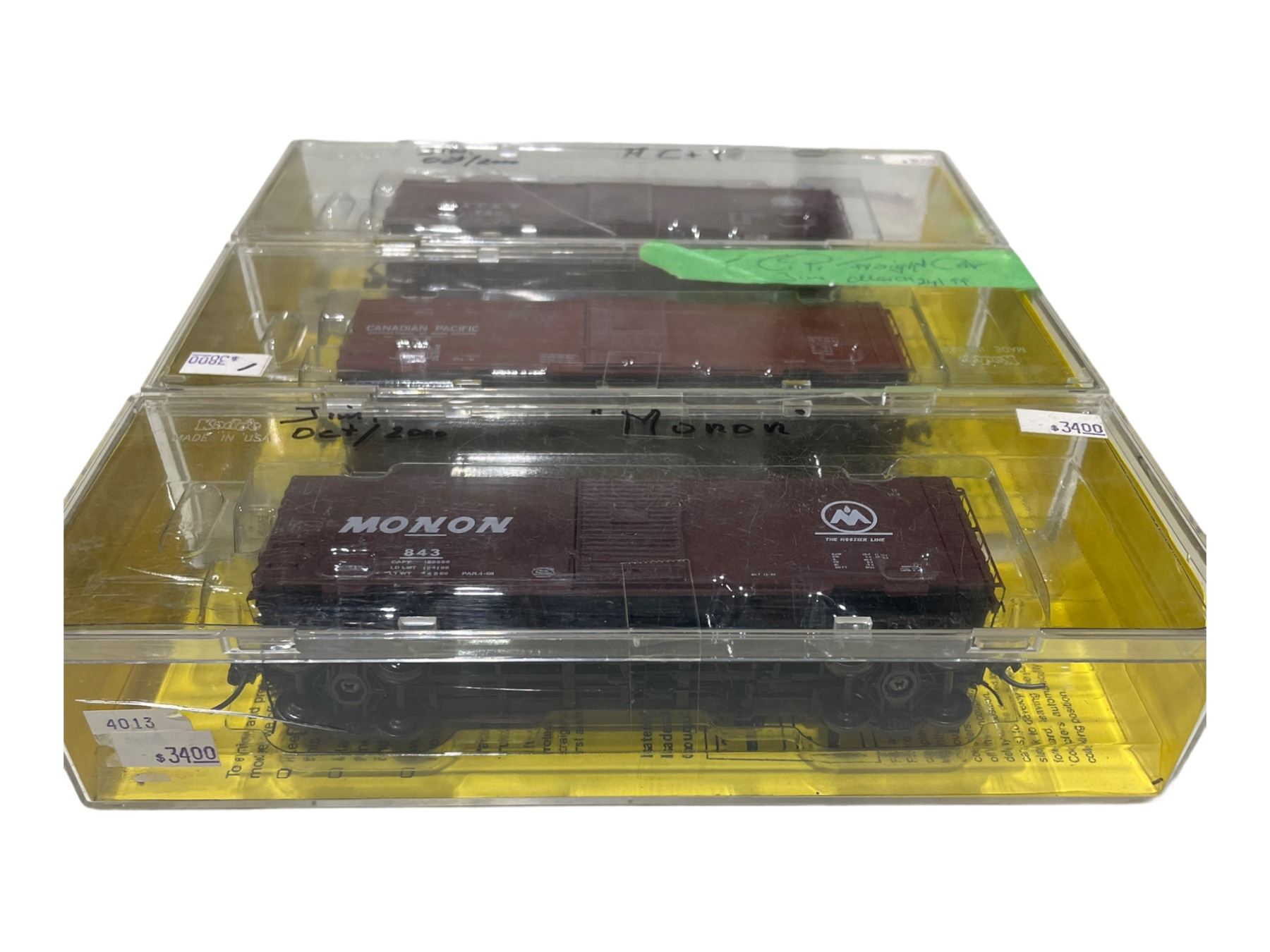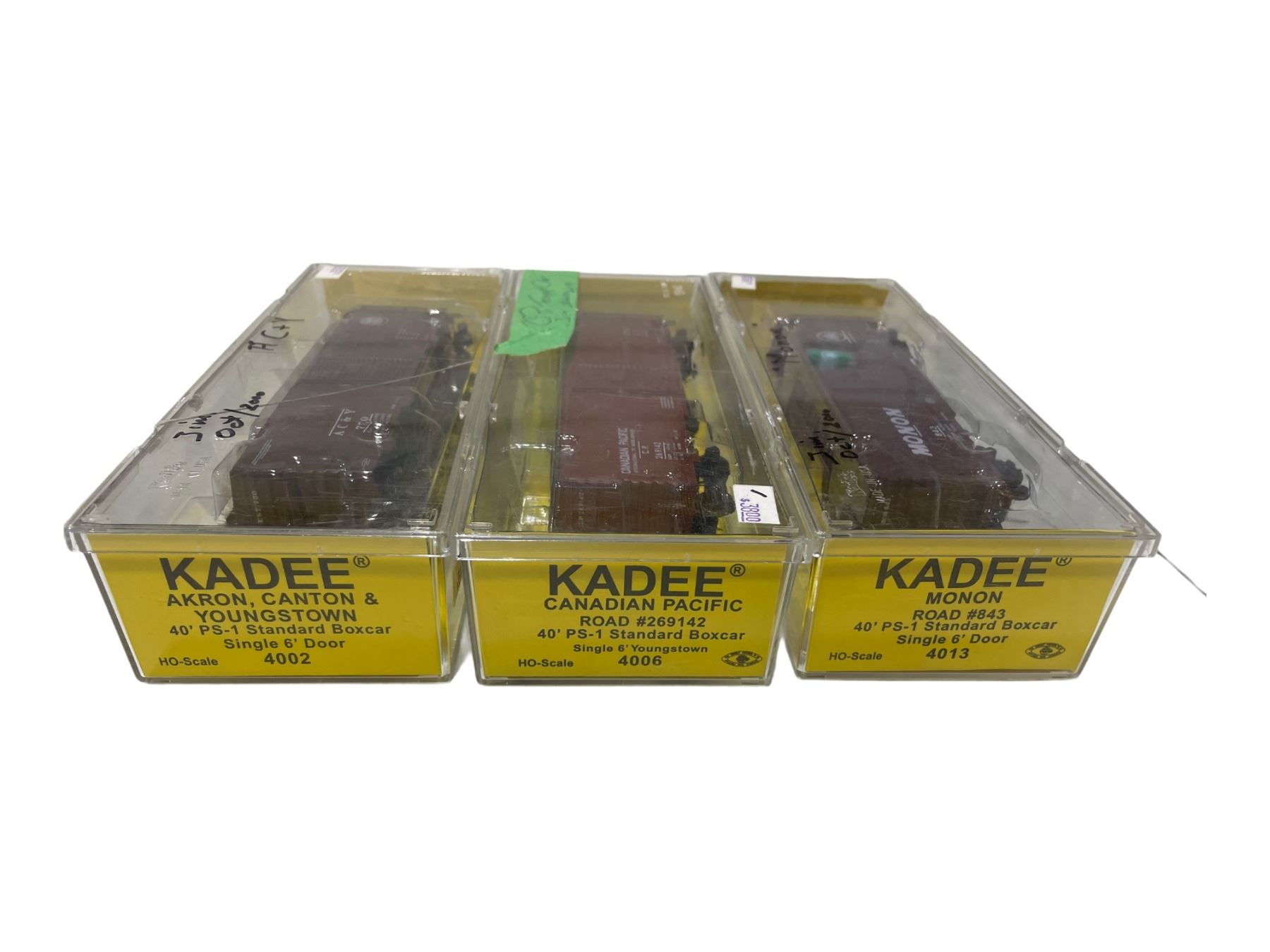 Includes Monon Road #843 40' PS-1 Standard Boxcar Single 6' Door 4013 - AKRON, CANTON & YOUNGSTOWN 40' PS-1 Standard Boxcar Single 6' Door 4002 - Canadian Pacific Road #269142 40' PS-1 Standard Boxcar Single 6' Youngstown 4006