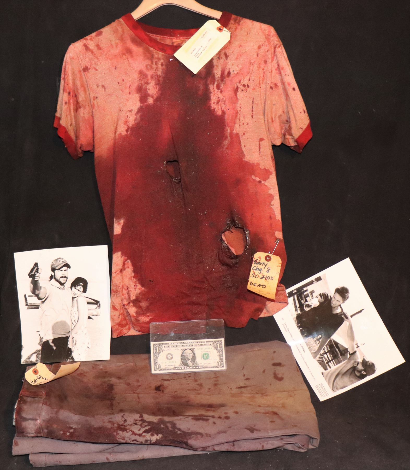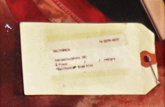KALIFORNIA EARLY GRACE BRAD PITT SCREEN MATCHED BLOODY DEATH SCENE WARDROBE WITH STUDIO TAGS!
