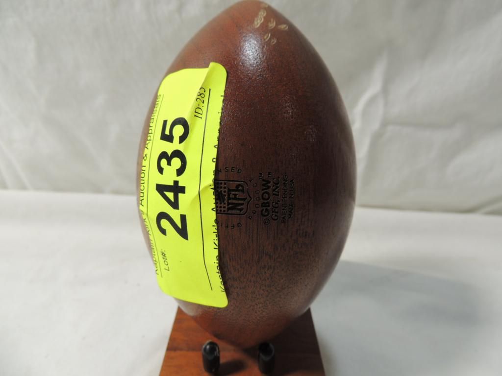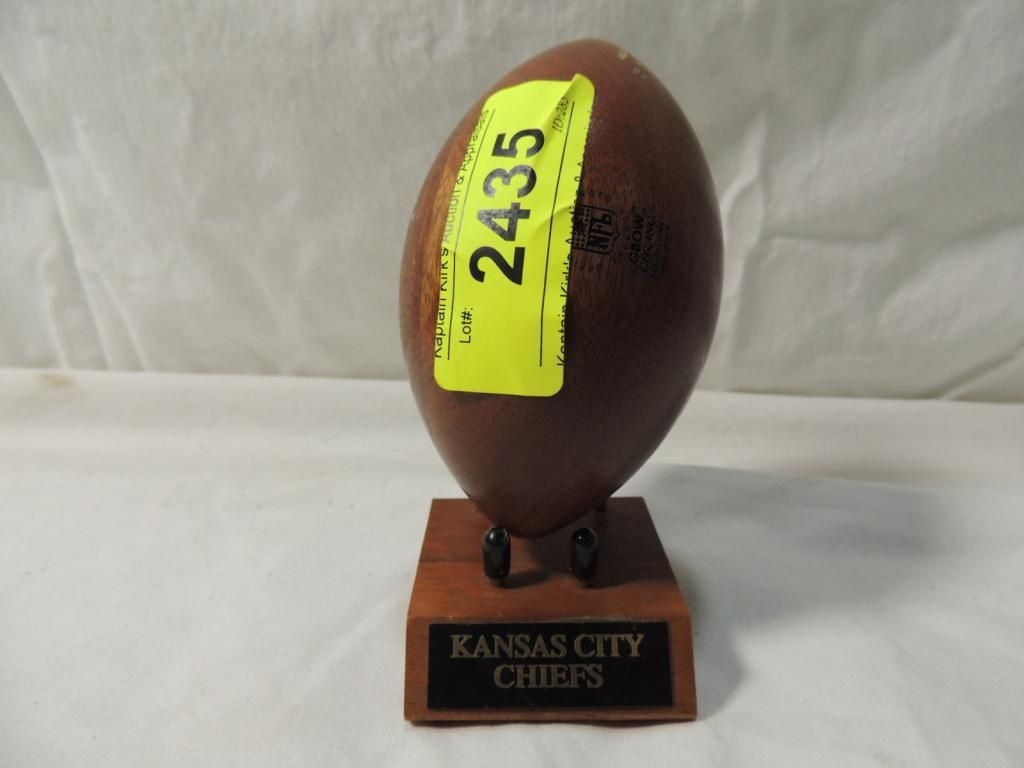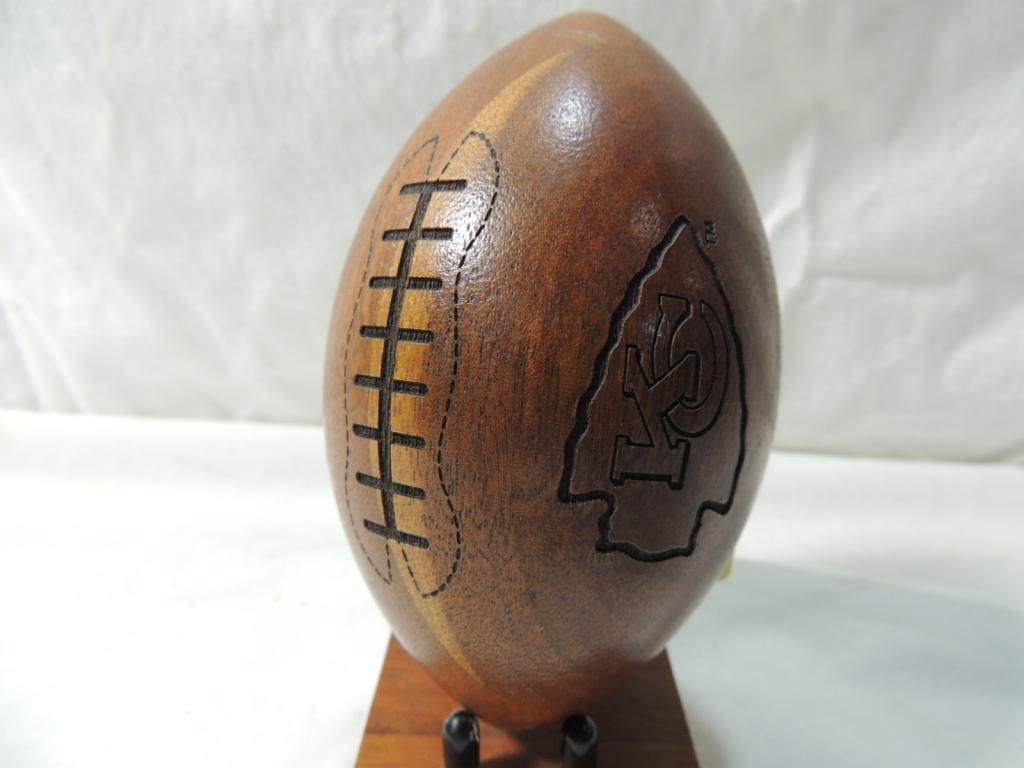 KANSAS CITY CHIEFS WOODEN FOOTBALL DECORATIVE FOOTBALL. COLLECTIBLE. PAPERWIEGHT. OFFICE DECOR. COLLECTIBLE. AS SHOWN SEE PHOTO FOR MORE DETAILS.