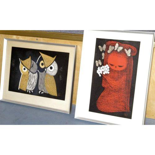 KAORU KAWANO, pair of framed woodblock pri
