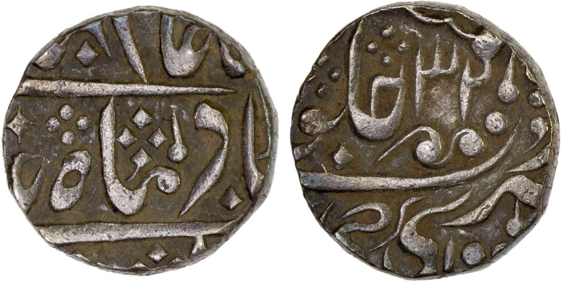 KARAULI: AR rupee, year 32, KM-31, in the name of the Mughal Emperor Bahadur Shah II, VF-XF.