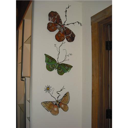 Three Enameled Metal Moths; Circa 2004: Modeled with extended feelers and enameled in appropriate colors.