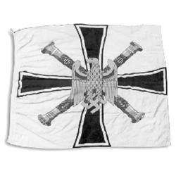<b>364. KARL DONITZ'S GRAND ADMIRAL'S HEADQUARTERS FLAG. KARL DONITZ </b>(1891 - 1980)<b> </b>German admiral who headed the U-Boat arm of the German Navy, later succeeded Hitler as Fuehrer after Hitler's suicide. A most important Donitz relic, his personal standard which flew over Donitz's headquarters at Plon, Holstein in northern Germany, from where he assumed leadership of Hitler's crumbled empire and later ordered Gen. Alfred Jodl to surrender. The flag measures approx. 94" x 94" with a white field at center, a large gold armed forces eagle atop a gold swastika, with overlaying crossed batons on a Maltese cross. A halyard, looped at top, threads the flag's hoist. The flag also bears the stenciled notation "<i>Flag. Grossadmiral 2.4 x 2.4</i>". In excellent condition, bearing only the slightest wear. Accompanied by a photograph, 3" x 5" color, showing the flag and bearing on verso a note on the flag's provenance: "<i>This is a photograph of the actual flag of Gross Admiral Karl Doenitz who was Commander-in-Chief of all German Naval Forces at the end of World War II. It was found at his abandoned H.Q. in Plon in Holstein, N. Germany... </i>" and bearing the name of the flag's British finder. The flag then passed into the hands of an American collector who in 1973 wrote Donitz, sending him a copy of the photo of the flag. A copy of Donitz's response is included, in which he states (in German) that the flag was indeed his standard but was not his personal property as such. This is a most significant item, likely the last Nazi German flag to fly over its country's de facto seat of government.<b>$3,000-5,000</b>