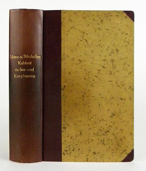 Knyphausen, Karl. MÜNZ- UND MEDAILLEN-KABINET DES GRAFEN KARL ZU INN- UND KNYPHAUSEN. Hannover, 1872. x, 419, (1) pages; 2 fine Lichtdruck plates. [bound with] Knyphausen, Karl. ERSTER NACHTRAG ZUM MÜNZ- UND MEDAILLEN-KABINET DES GRAFEN KARL ZU INN- UND KNYPHAUSEN. Hannover, 1877. vii, (1), 232 pages; 6 lithographic plates. Small 8vo, later maroon cloth and boards, gilt. Fine. Very rare. Clain-Stefanelli 9301*.