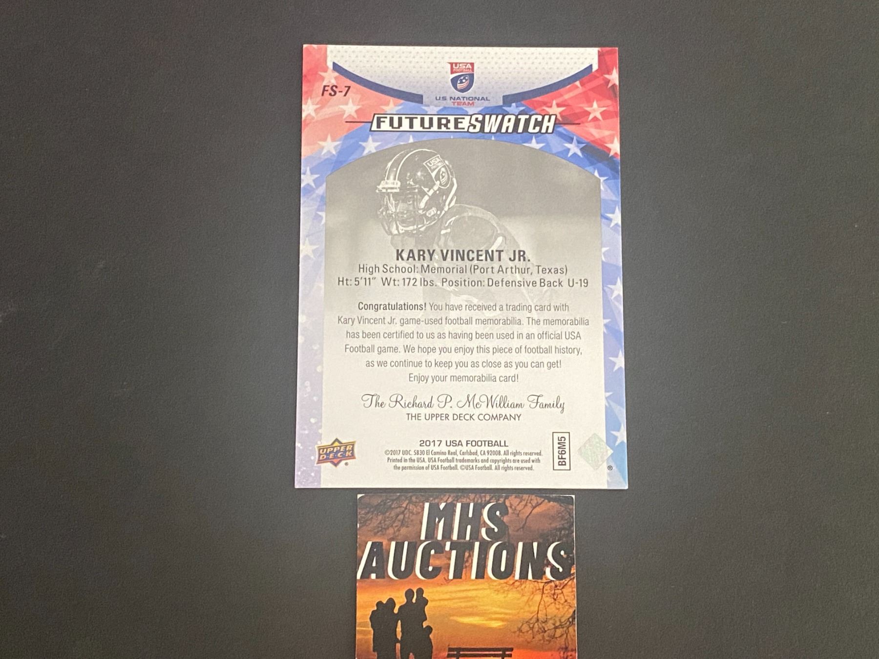 KARY VINCENT JR 2017 USA FOOTBALL JERSEY CARD