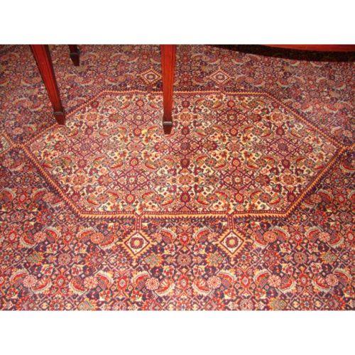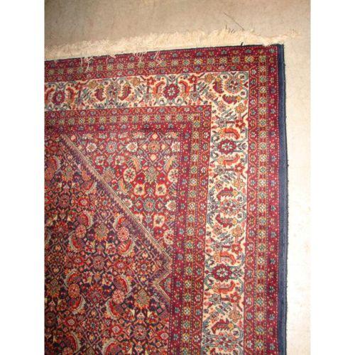 KASHAN SEMI-ANTIQUE PERSIAN RUG. Decorated with blue, red, tan, & brown colors. 119” x 79”
