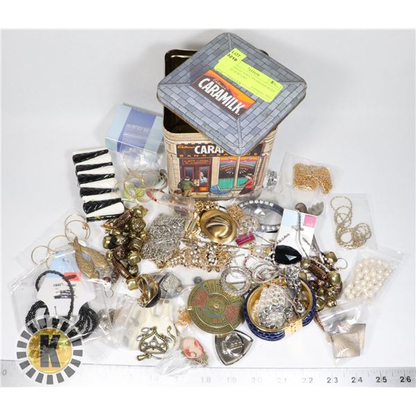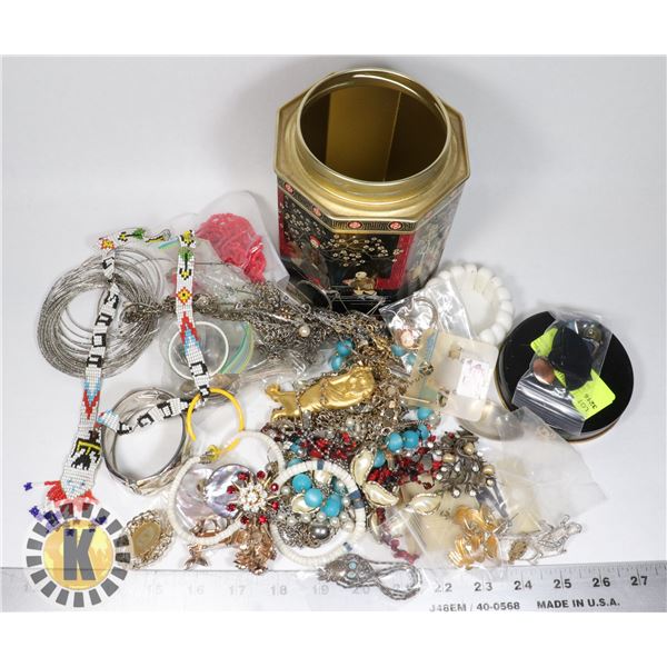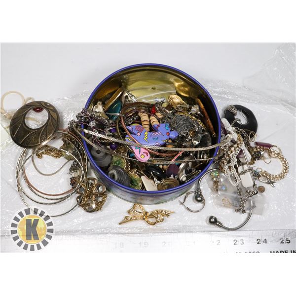 OLD COLLECTORS TIN FILLED WITH ESTATE JEWELRY3219 - OLD COLLECTORS TIN FILLED WITH ESTATE JEWELRY