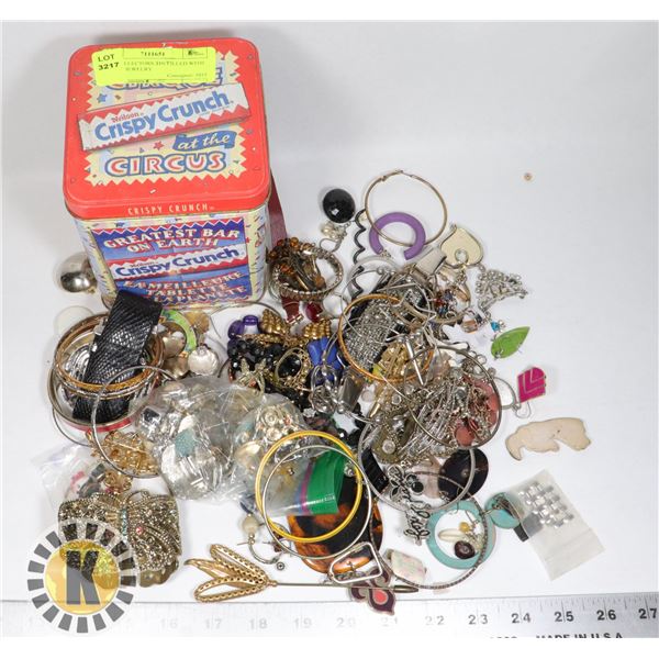 OLD COLLECTORS TIN FILLED WITH ESTATE JEWELRY3217 - OLD COLLECTORS TIN FILLED WITH ESTATE JEWELRY