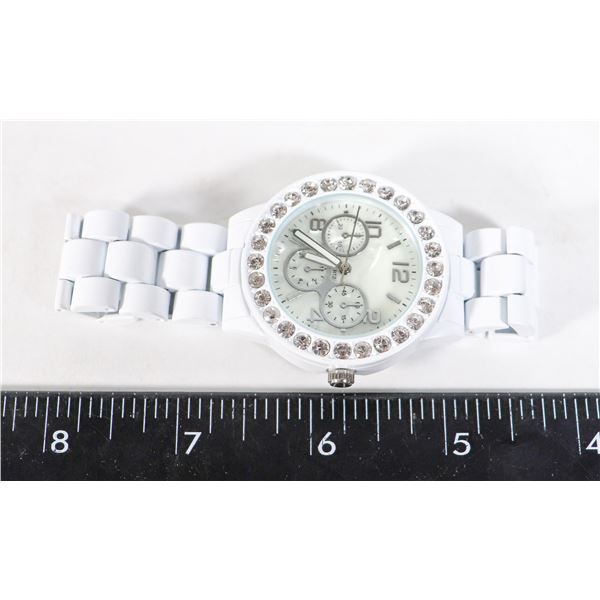 WHITE METAL RHINESTONE WATCH