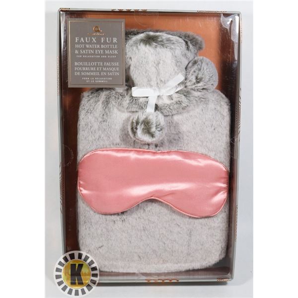 NEW FAUX FUR HOT WATER BOTTLE AND SATIN EYE MASK