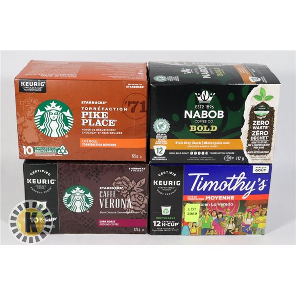 FOUR ASSORTED BOXES OF COFFEE PODS